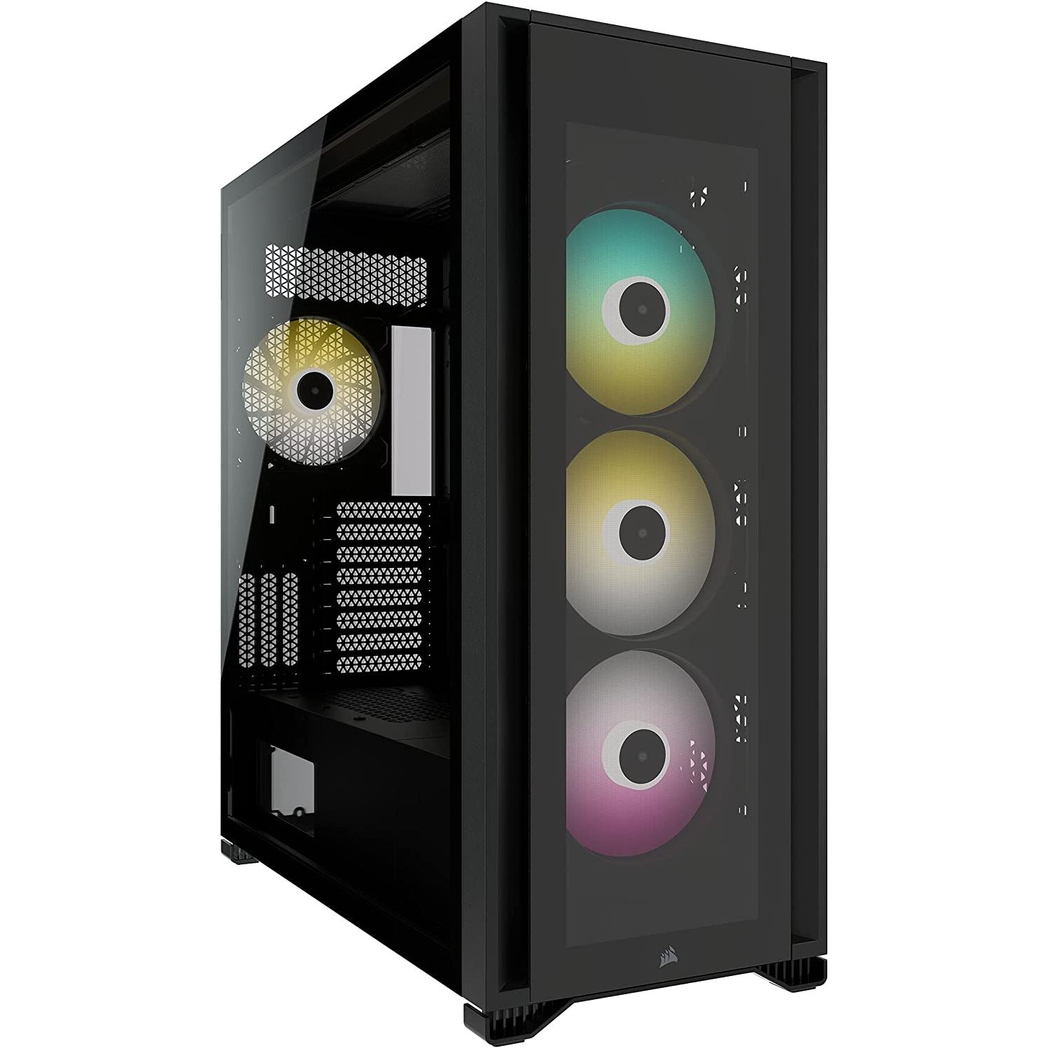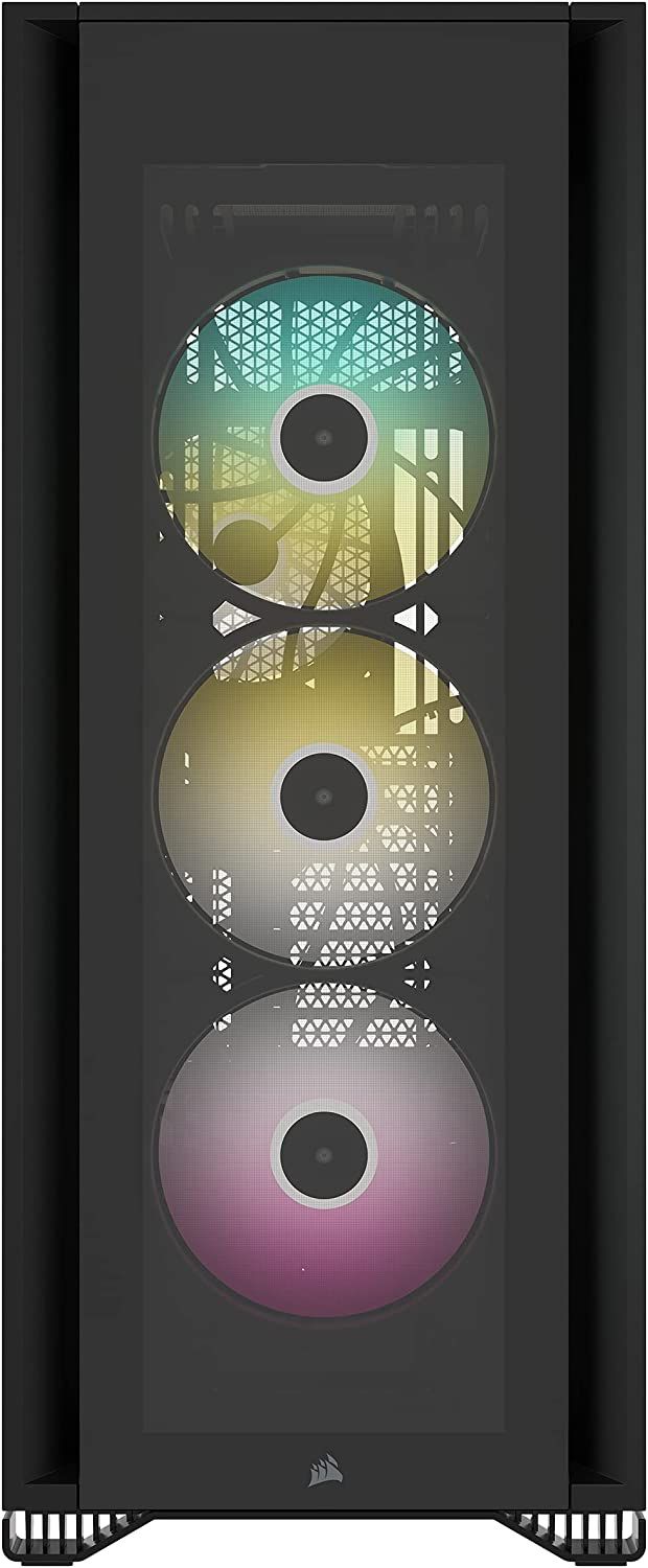 За трьома виготовленими із загартованого скла панелями корпусу CORSAIR iCUE 7000X RGB формату Full-Tower ATX усі компоненти вашої системи будуть видні як на долоні: простір для одночасної установки до трьох 360-міліметрових радіаторів, система прихованого прокладення кабелів і чотири вентилятори CORSAIR SP140 RGB ELITE, що входять в комплект.