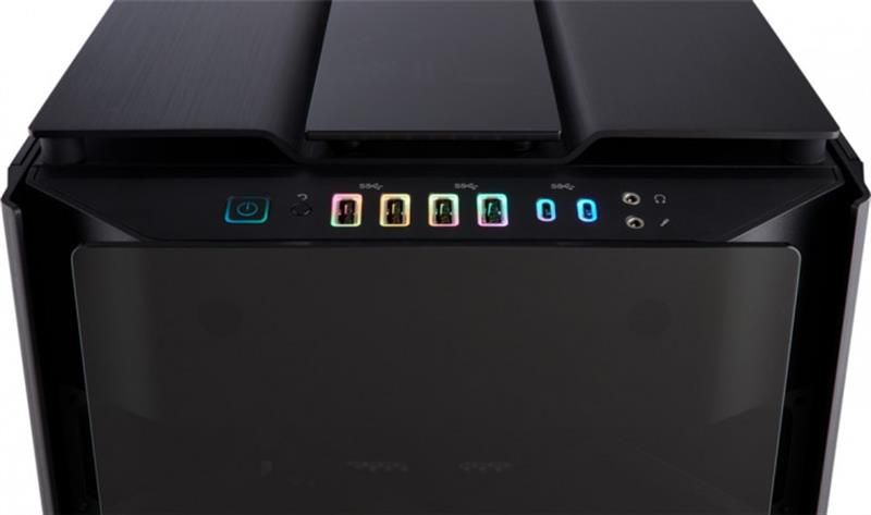 Оснащена світлодіодним RGB-підсвічуванням передня панель містить два порти USB 3.1 Gen-2 Type-C і чотири порти USB 3.0, що залишає простір для майбутніх модифікацій і забезпечує зворотну сумісність.
