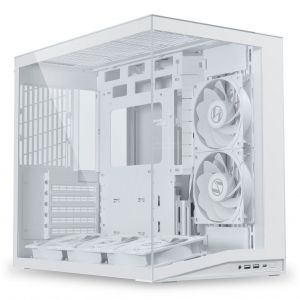 Корпус Lian-Li O11 Dynamic Mini V2 Flow поєднує компактний розмір із розширеною підтримкою апаратного забезпечення. Безрамкові панелі з загартованого скла на передній і бічній сторонах забезпечують чистий огляд внутрішнього простору. Основа корпусу нахилена на 10°, що покращує потік повітря до відеокарти та додає естетичної привабливості.