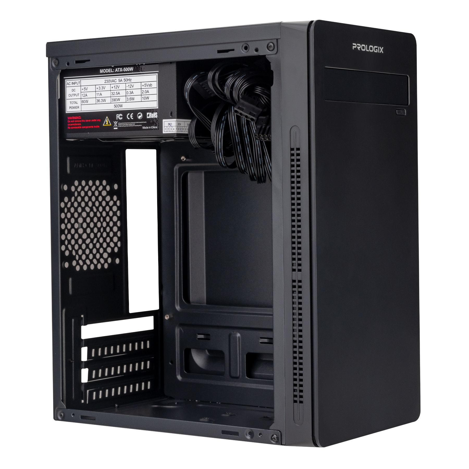 Корпус E101 500W 12 см, 2xUSB3.0, Black має блок живлення потужністю 500 Вт із верхнім розташуванням. Завдяки такому розташуванню блок живлення збиратиме менше пилу. Корпус призначений для бюджетного цінового сегмента і підходить для самостійної або промислової збірки комп'ютера. Виробник оснастив корпус трьома панелями для встановлення вентиляторів, які якісно охолоджуватимуть комп'ютер: бічна панель (опція) розміром 1х120 мм, задня панель (опція) розміром 1х80 мм і передня панель (опція) розміром 1х20 мм. Також корпус має досить велику висоту кулера - 145 мм і класичний дизайн у чорному кольорі. Prologix є надійним розробником, завдяки чому ви зможете зібрати якісний комп'ютер, який прослужить вам довгий час.