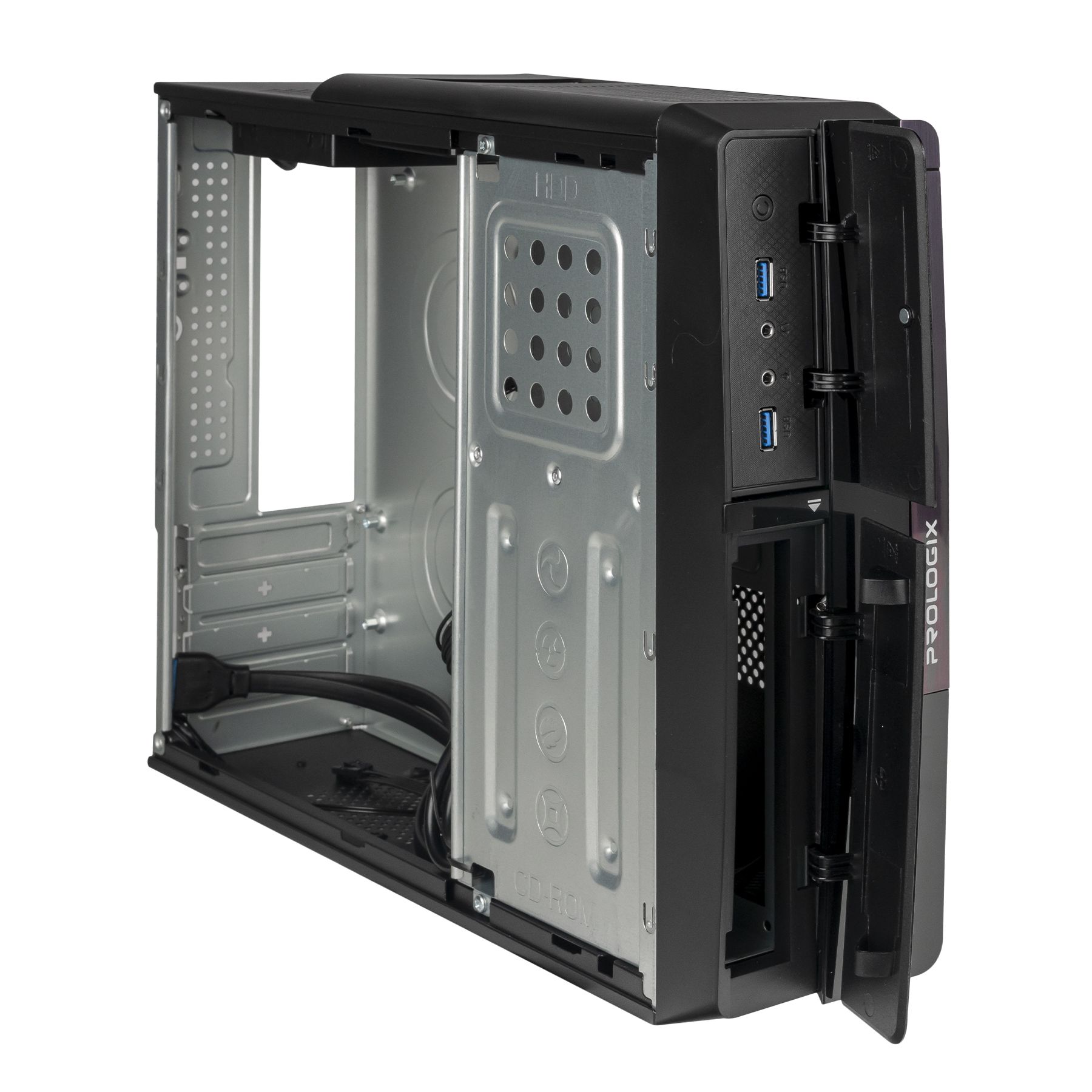 Вибір корпусу Prologix E106 Slim Black Door 400W буде оптимальною основою для самостійного складання, складно знайти щось краще. Ергономічний дизайн моделі формату Slim DeskTop з металу завтовшки 0,5 мм і класичного чорного кольору дає змогу здійснити мрії про ПК з індивідуальним функціоналом, USB і аудіороз'ємами.
