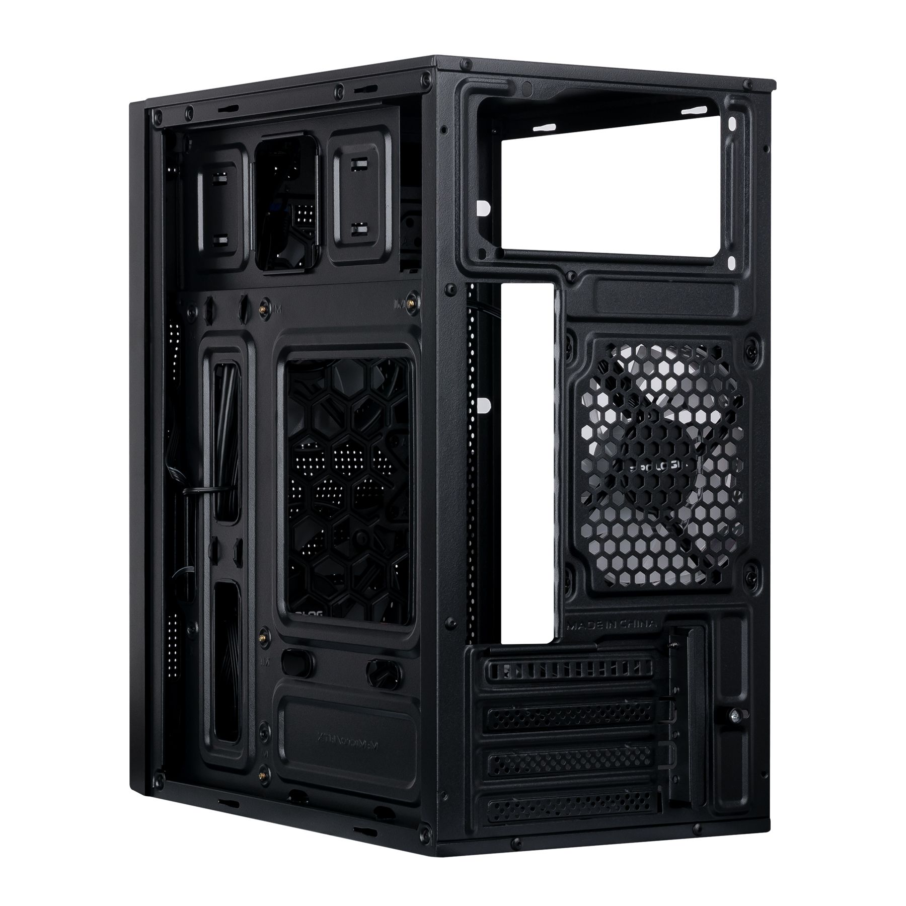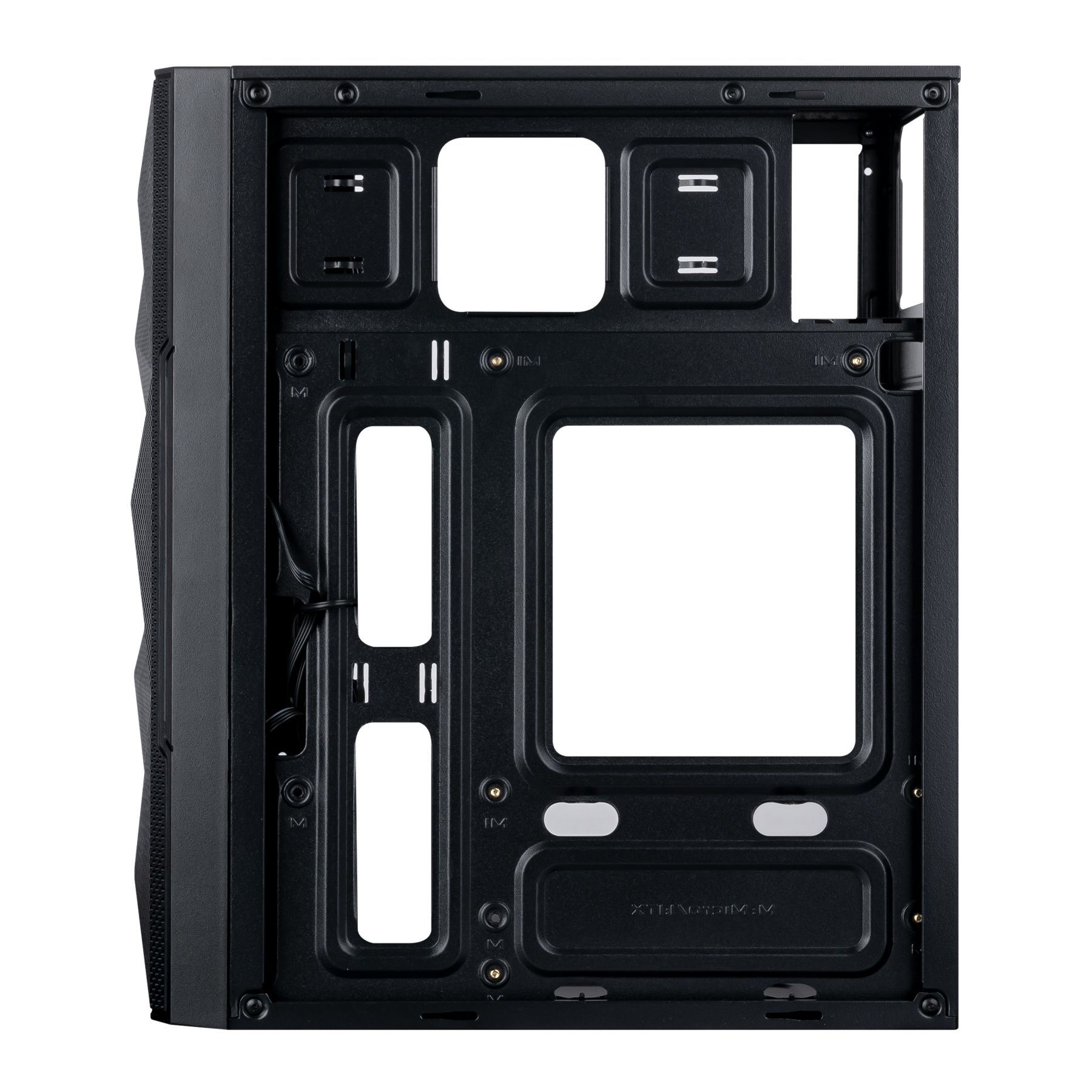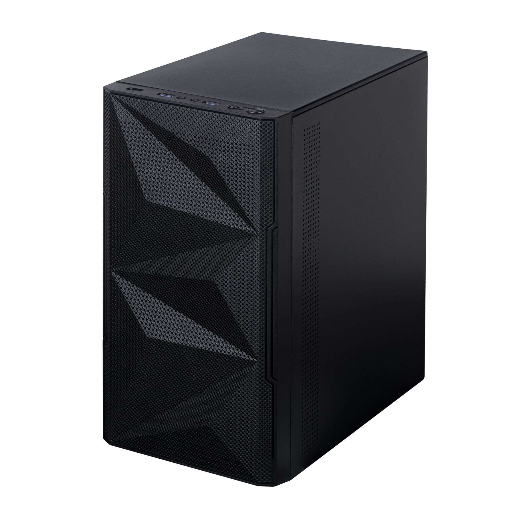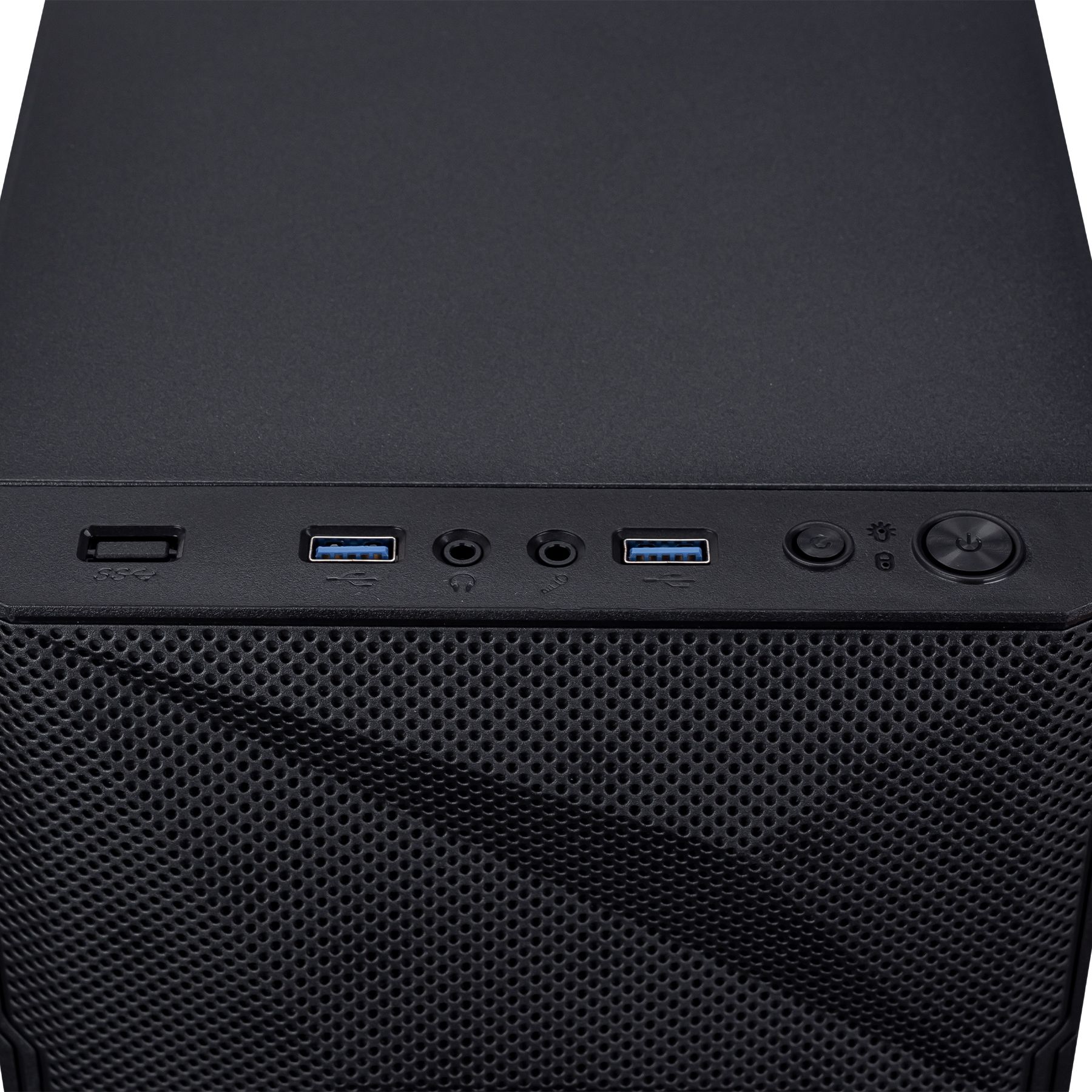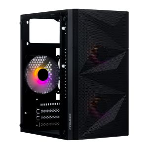 Передня панель, виконана з сітки нестандартного виконання у вигляді граней, що покращує вентиляцію та демонструє вентилятори з підсвічуванням, яке регулюється. Бічна панель – загартоване скло, що дозволяє розглянути всі компоненти системи. Корпус оснащений сучасними роз’ємами 2xUSB 3.0.