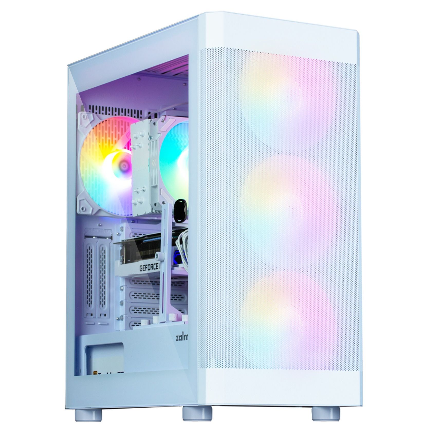 Корпус I4 TG - стильний білий корпус для комп’ютера без вбудованого блока живлення. Корпус має чотири вентилятори діаметром 140 мм із підтримкою RGB-підсвітки, що надає системі ефектного зовнішнього вигляду.