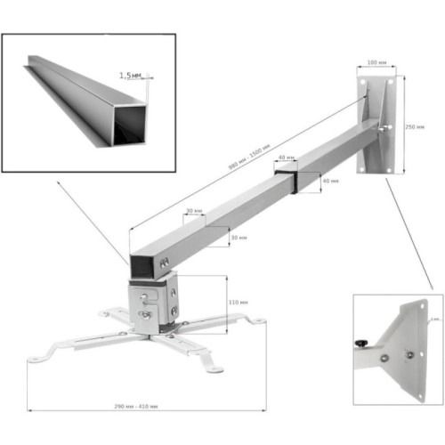 Кронштейн для проектора Sector PRB95-150 (кут нахилу 15°, кут повороту 15°, навантаження до 25 кг, відстань від стіни 950-1500 мм, настінний кронштейн, сірий)