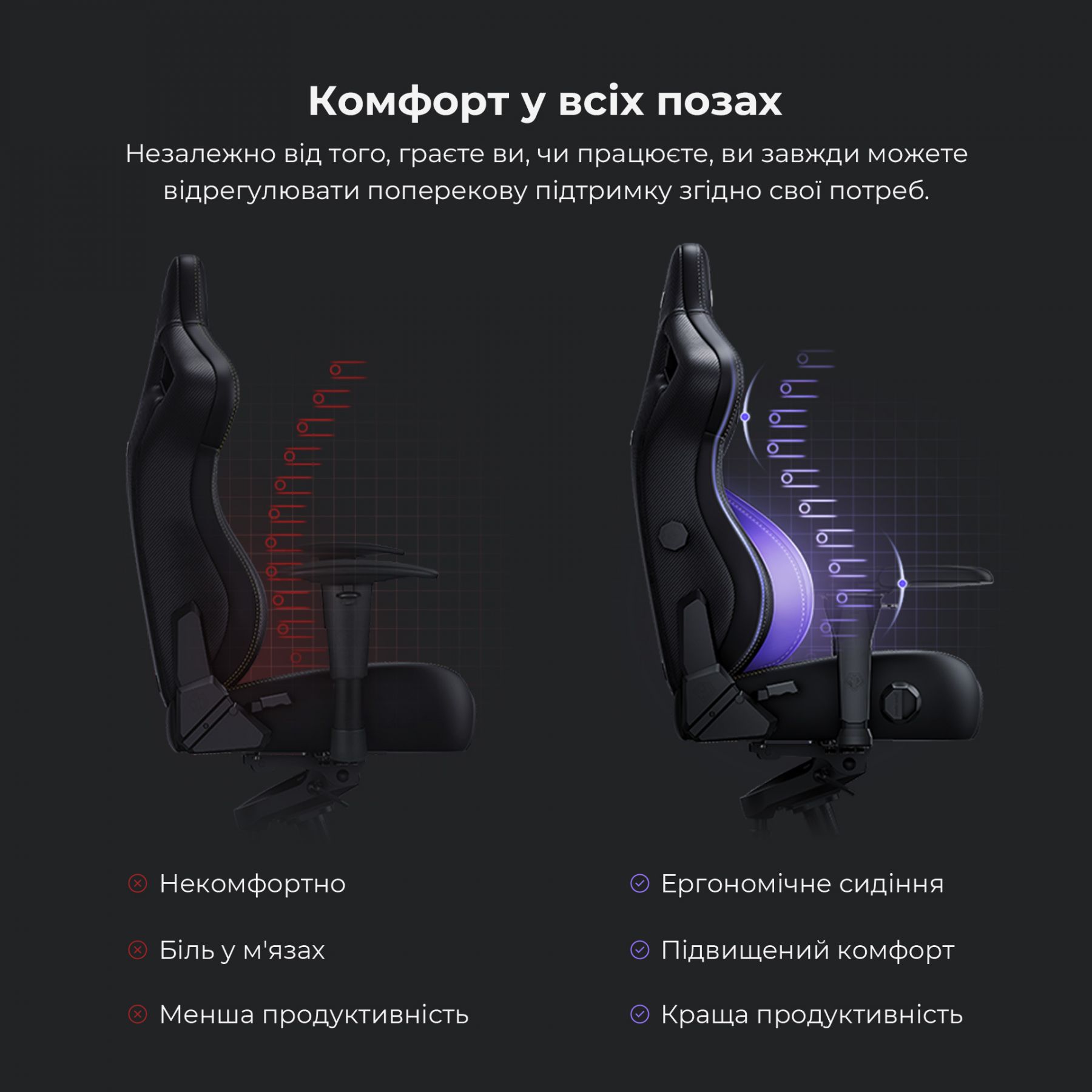 Незалежно від того, граєте ви, чи працюєте, ви завжди можете відрегулювати поперекову підтримку відповідно до свої потреб.