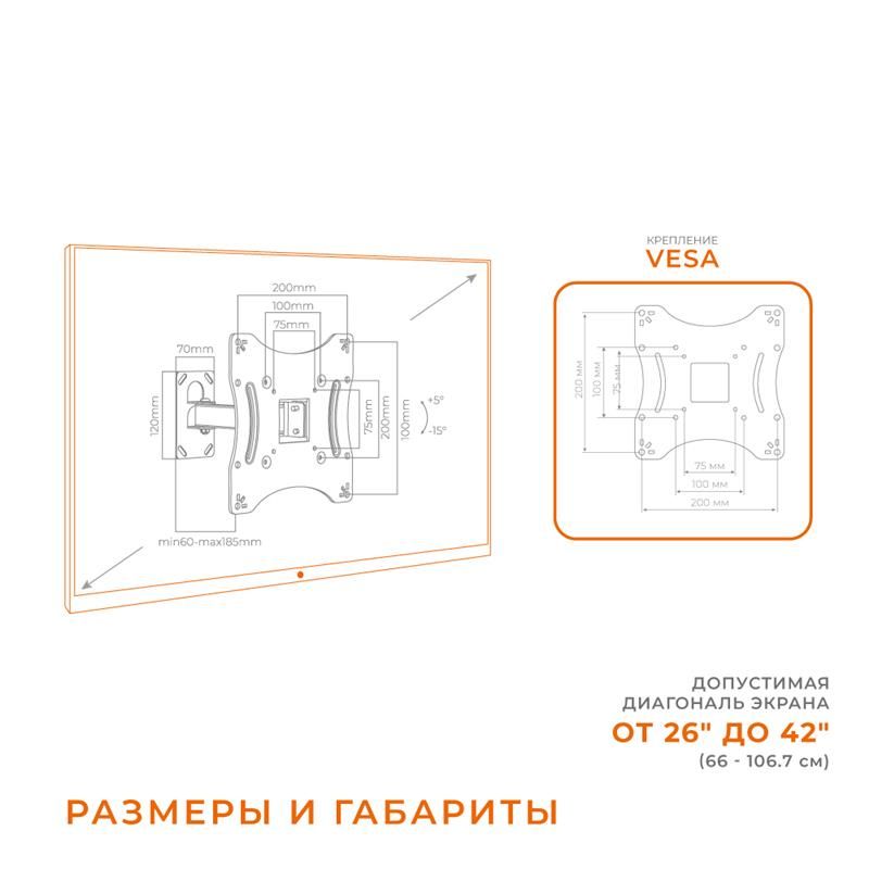 Зручний і сучасний кронштейн, призначений як для телевізорів, так і для моніторів, підтримує VESA. Здатний витримати вагу до 25 кг, підтримує телевізори та монітори з діагоналлю 26-42 дюйми, швидке навішування, легкий у використанні. У комплекті з кронштейном ви знайдете: рівень для рівного встановлення кронштейна, органайзери для кабелів телевізора або монітора, кріплення для монтажу та інструкцію щодо експлуатації продукції.