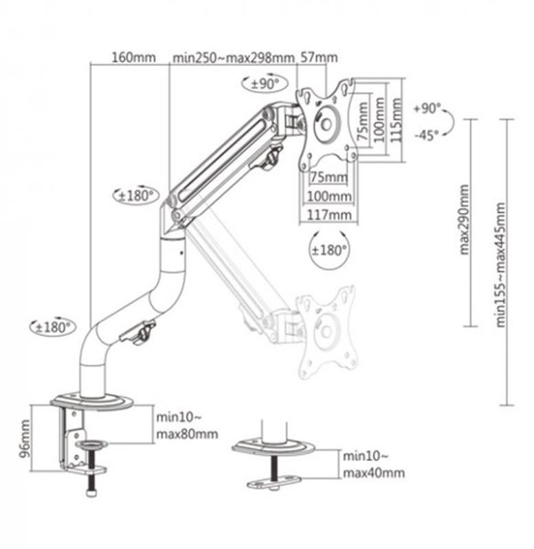Міцні регульовані газові пружини підходять для моніторів вагою від 2 до 8 кг
