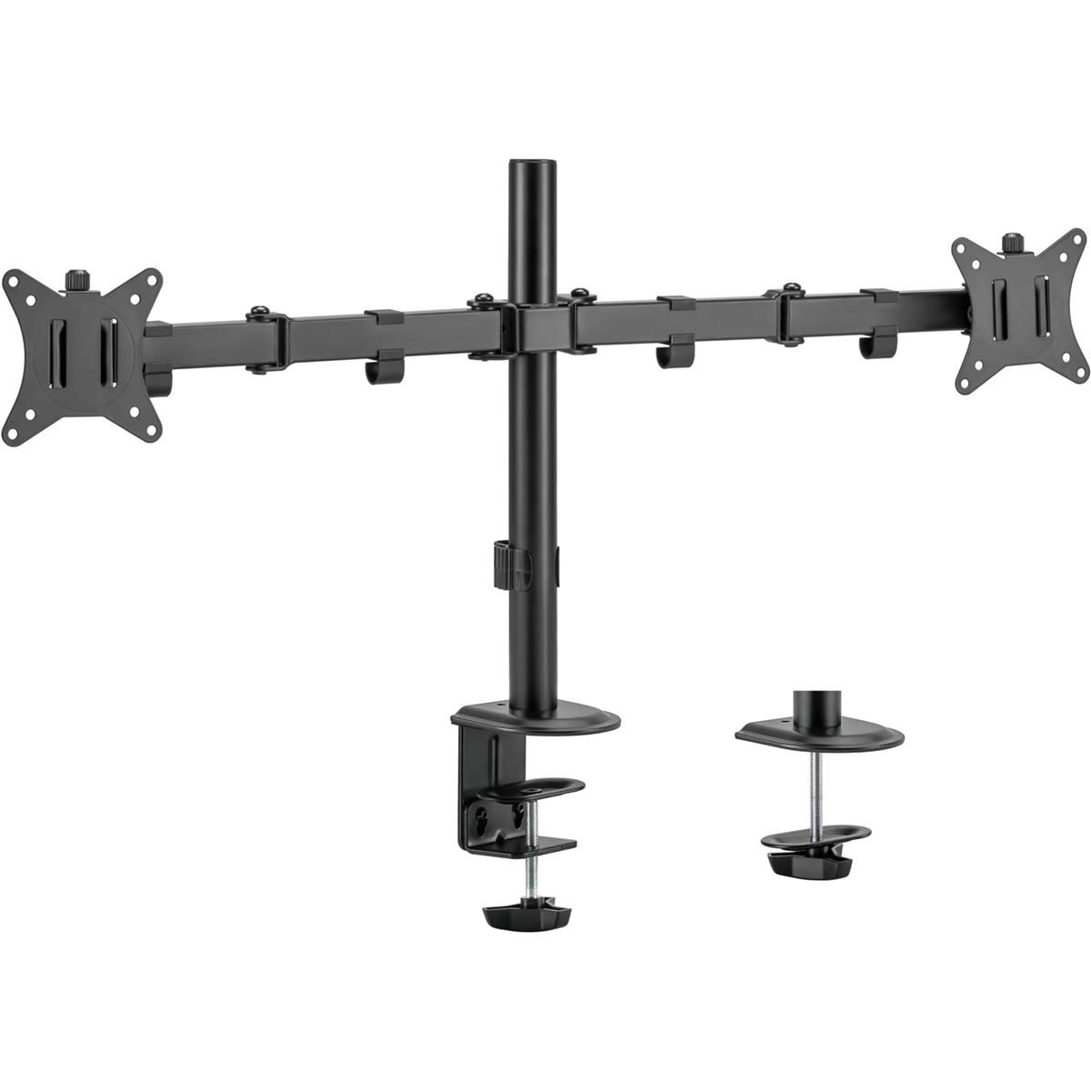 Завдяки міцній сталевій конструкції HS082406 забезпечує стійку підтримку двох моніторів із діагоналлю від 17 до 32 дюймів вагою до 9 кг на кронштейн. Гнучка конструкція для широкого регулювання і кутів огляду, регульована для портретної або альбомної орієнтації. Для встановлення на будь-якій робочій поверхні передбачено кріплення у вигляді втулок і затискачів. Знімна пластина VESA для зручного встановлення. Кабельні затискачі в комплекті для організованого та вільного від безладу робочого місця.