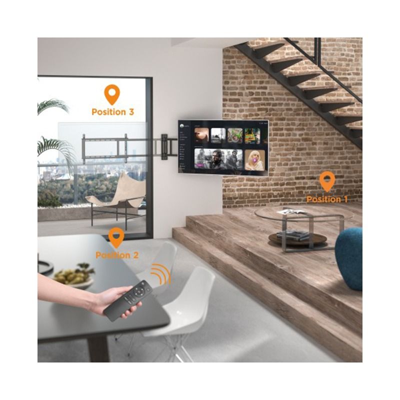 Знайдіть ідеальний кут огляду одним простим натисканням. Моторизоване поворотне кріплення для телевізора призначене для більшості телевізорів з діагоналлю 32"-75" та вагою до 50 кг.