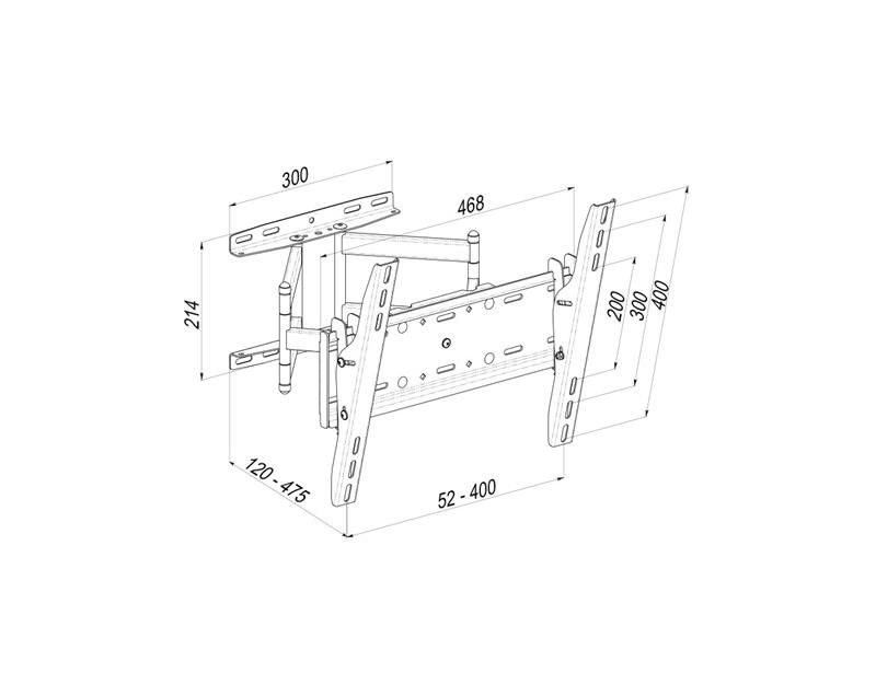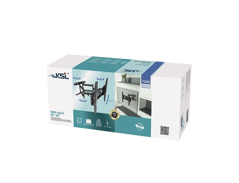 Поворотний кронштейн WMO-6246T підходить для плазмових, LCD, LED телевізорів і моніторів з діагоналлю 32-65 дюймів і вагою до 50 кг. Підтримує стандарт VESA: від 100 ? 200 мм до 400 ? 400 мм.