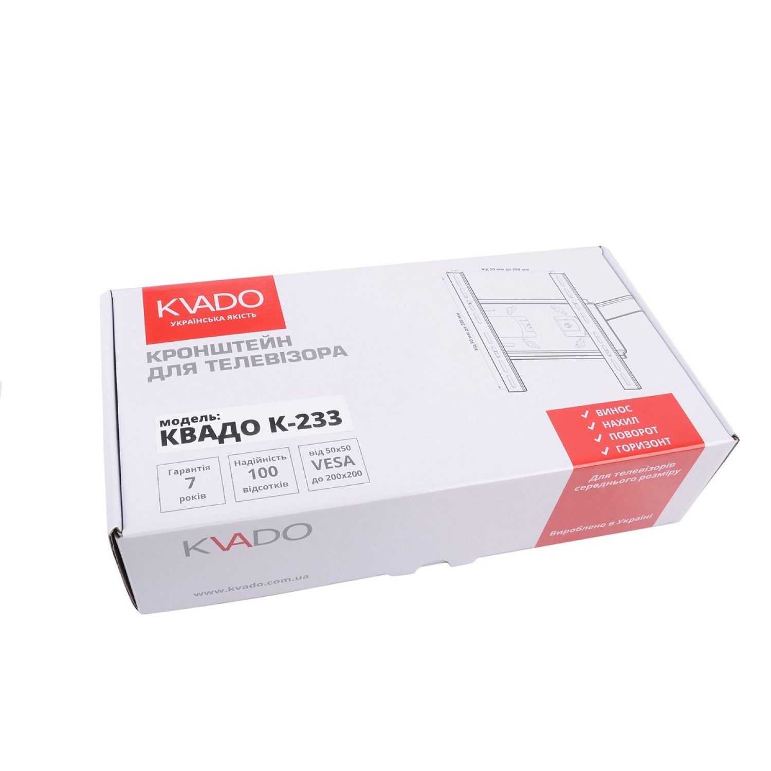 Квадо К-233 - міцне виносне кріплення, з багатьма ступенями свободи, поєднує в собі елегантний дизайн і надійність.