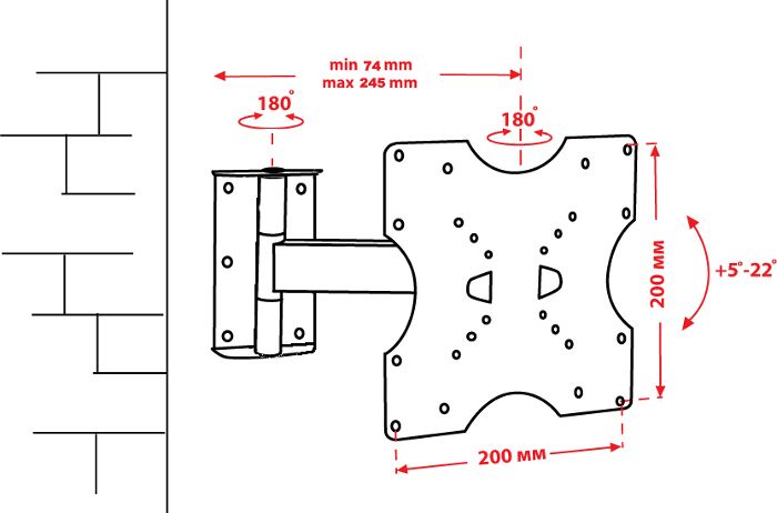 Кронштейн дозволяє встановити телевізор із можливістю винесення від стіни на відстань до 240 мм.