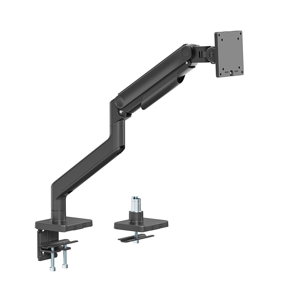 MA712B оснащений якісними пружинами та пропонує легке регулювання висоти, нахилу та повороту, що дозволяє користувачеві знайти ідеальне ергономічне положення для монітора. Попрощайтеся з напругою шиї та спини та насолоджуйтесь гнучкістю налаштування перегляду. Виготовлений із надміцних матеріалів і довговічної конструкції, кронштейн монітора може надійно утримувати навіть найважчі монітори вагою до 20 кг, забезпечуючи стабільність і спокій. Якщо підняти монітор над поверхнею столу, ви отримаєте цінний простір для організації найнеобхідніших речей і створите більш зручне та ефективне середовище. Відчуйте ідеальне поєднання економічності, довговічності та ергономічної функціональності