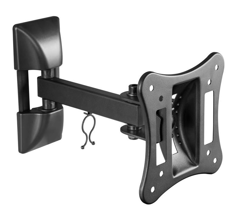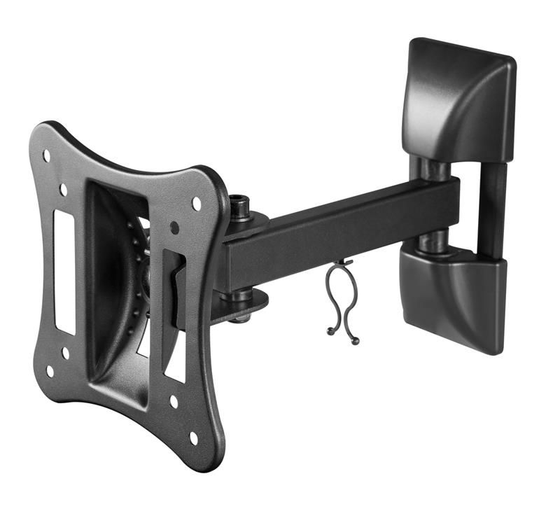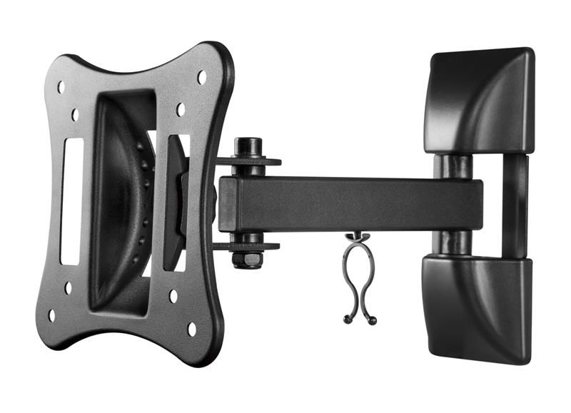 Кронштейн Satelit 15-32 PIVOT100 із категорії універсальних консолей з поворотним механізмом із кутом нахилу. Зміна нахилу по вертикалі доступна до 20°, поворот по горизонтальній осі до 90°. Дане кріплення призначене для настінної установки телевізорів або моніторів з розмірами екранів від 15’’ до 32’’ і стандартом кріплення VESA min 75x75, max 100x100. Запас міцності даної моделі поширюється на екрани вагою до 15 кг.
