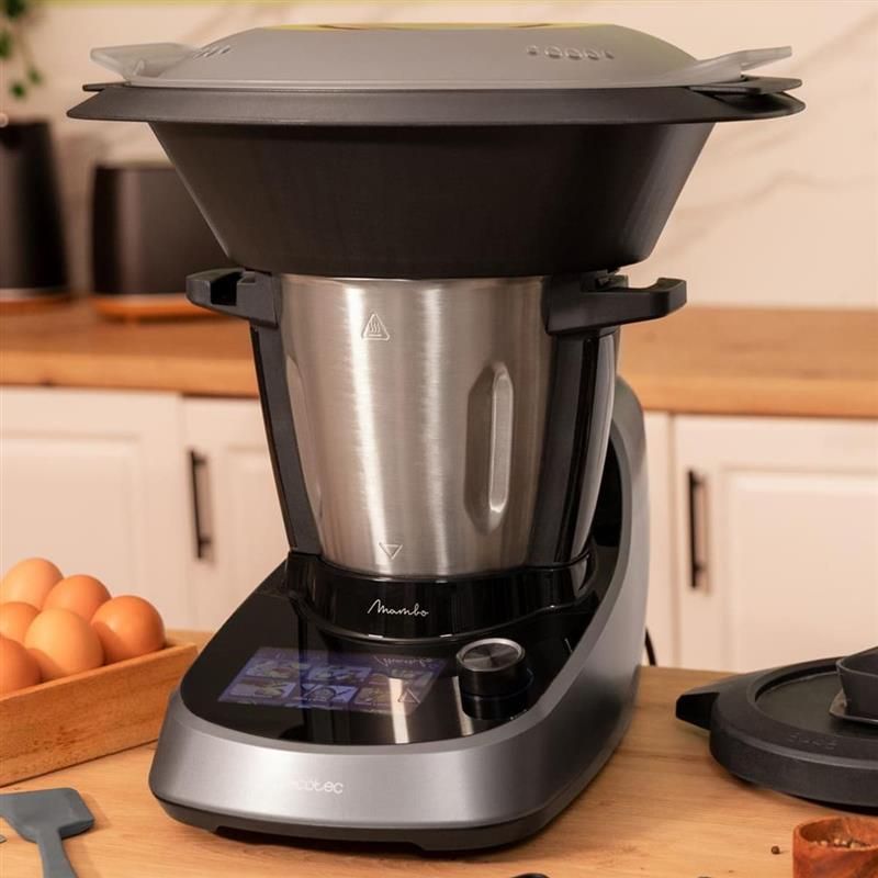 Чаша, пароварка на двох рівнях та ємність для приготування. CECOTEC Mambo Touch може готувати до 4 страв одночасно, до того ж не гаючи часу.