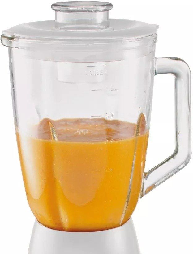 Банка об’ємом 1,5 л оснащена мірними мітками і дозуючим стаканчиком у верхній частині кришки.