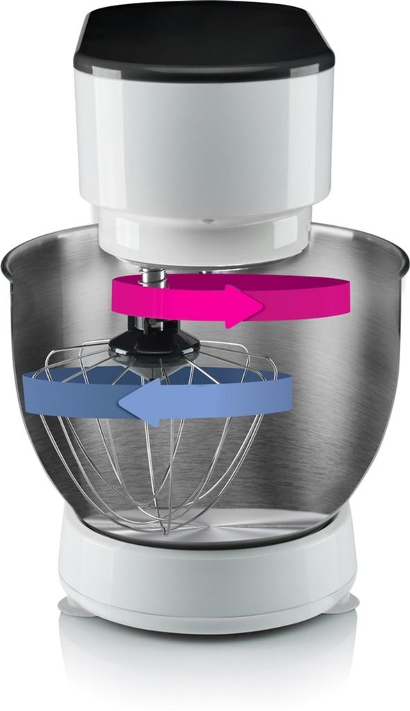 Насадка для змішування обертається навколо своєї осі, а головка для змішування обертається в протилежному напрямку, забезпечуючи ідеальне рівномірне змішування всіх інгредієнтів. У тісті залишається повітря, завдяки чому воно м’яке та податливе. Вам потрібно лише вибрати правильну насадку для улюбленого рецепта та насолоджуватися відмінним результатом.