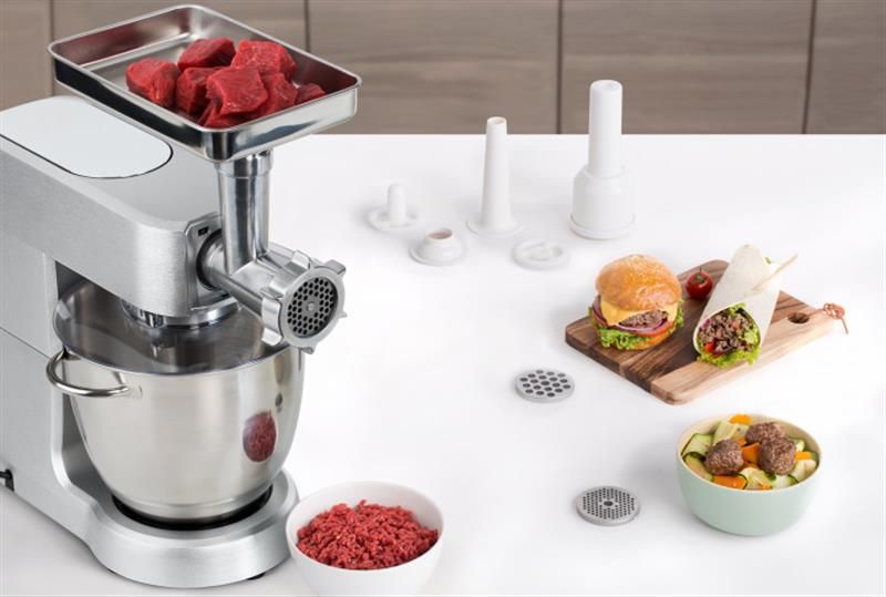 З Masterchef Grande ви з легкістю можете приготувати мигдальне печиво, пиріг з лимонним бізе, солоні вершки, листковий пиріг ... Завдяки потужному двигуну потужністю 1500 Вт, Masterchef Grande допомагає вам розширити свої можливості і досягнути успіху. Крім того, його чаша з максимальною місткістю 6,7 л дозволяє готувати до 2,6 кг суміші для кексу або 60 найкрасивіших кексів і 2,2 кг тіста для хліба або 10 смачних піц за один прийом! Приготуйте смачні домашні страви з доданими в упаковці насадками: блендером, м'ясорубкою і кухонним комбайном. Тепер у вас є можливість показати всій своїй родині і друзям, наскільки ви дбаєте про них!