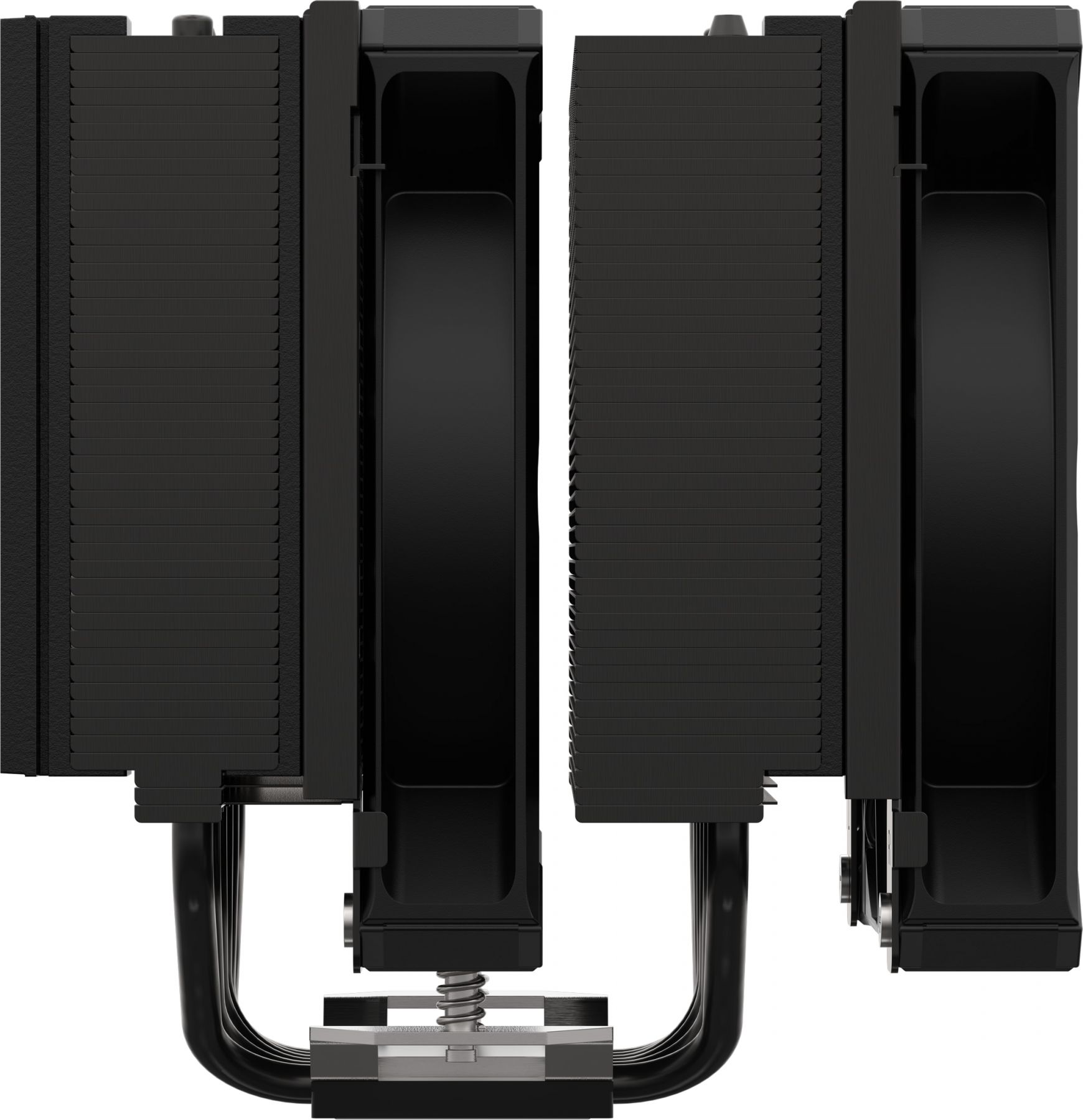 Високопродуктивний модуль повітряного охолодження центрального процесора включає мідну охолоджувальну пластину і шість 6-мм теплових трубок для високопродуктивної передачі тепла в поєднанні з гнучкою системою кріплення вентиляторів, що передбачає їх плавне переміщення і фіксацію, і вентиляторами, що забезпечують концентрований інтенсивний.