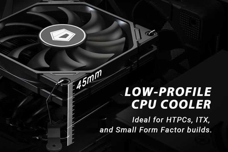 Надкомпактний низькопрофільний кулер загальною висотою всього 45 мм - ідеально підходить для HTPC, ITX та складання малого форм-фактора.