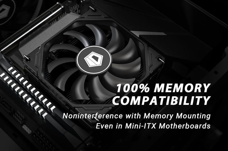 Невеликий розмір процесорного кулера забезпечує відмінну сумісність пам’яті навіть із материнськими платами Mini-ITX.