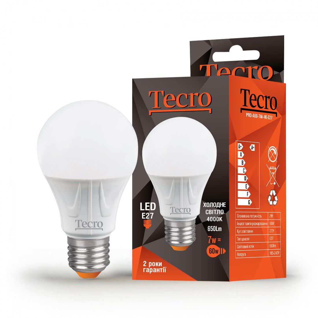 Лампа світлодіодна Tecro 7W E27 4000K (PRO-A60-7W-4K-E27)