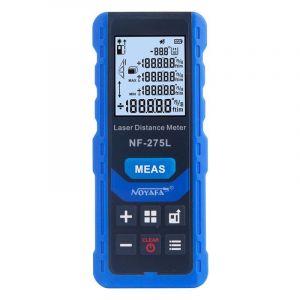 Професійна лазерна лінійка Noyafa NF275L-100 призначена для вимірювання відстаней в діапазоні від 0,1 до 100 метрів, кутів нахилу в діапазоні ± 90°, оснащена функціями віднімання та складання, швидкого розрахунку площ (у тому числі і трикутних) висот виходячи з теореми Піфагора, і виконаних лінійних і кутових вимірів, наприклад: значень висоти виходячи з виміряної відстані до основи і вершини, чи відстані до вершини і куті між напрямом до вершини і основою .