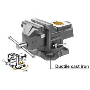 Лещата поворотні з ковадлом INGCO HBV088 призначені для надійної фіксації заготовок. Невелике ковадло для малих слюсарних робіт, яким оснащене пристосування, істотно розширює сферу його застосування. Поворотна основа забезпечує доступ для обробки заготовок із різних боків. Надійному кріпленню до верстата або робочого столу сприяють посадкові пази в основі лещат. Зусилля затиску 2500 кгс. Діагональ поворотної основи 200 мм. Вага 21 кг.