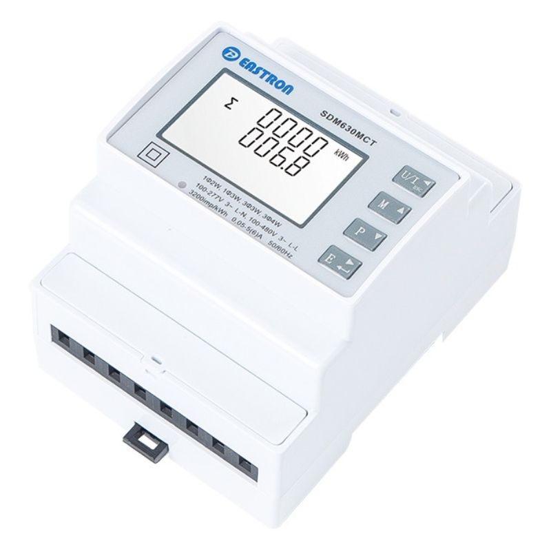 SDM630MCT зазвичай монтується на DIN-рейку для зручності встановлення в електрощитовій або контрольній панелі. У цього аналізатора є різні інтерфейси для під’єднання інших пристроїв, зберігання даних і налаштування параметрів вимірювання.