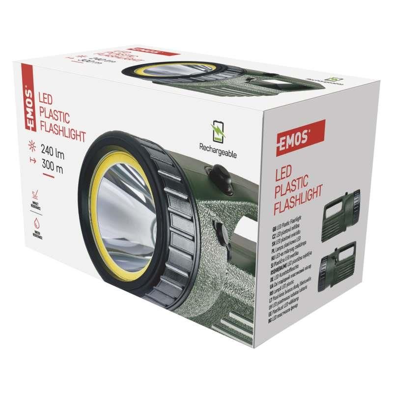 Emos P2308 - ручний пластиковий ліхтар зі вбудованим акумулятором.