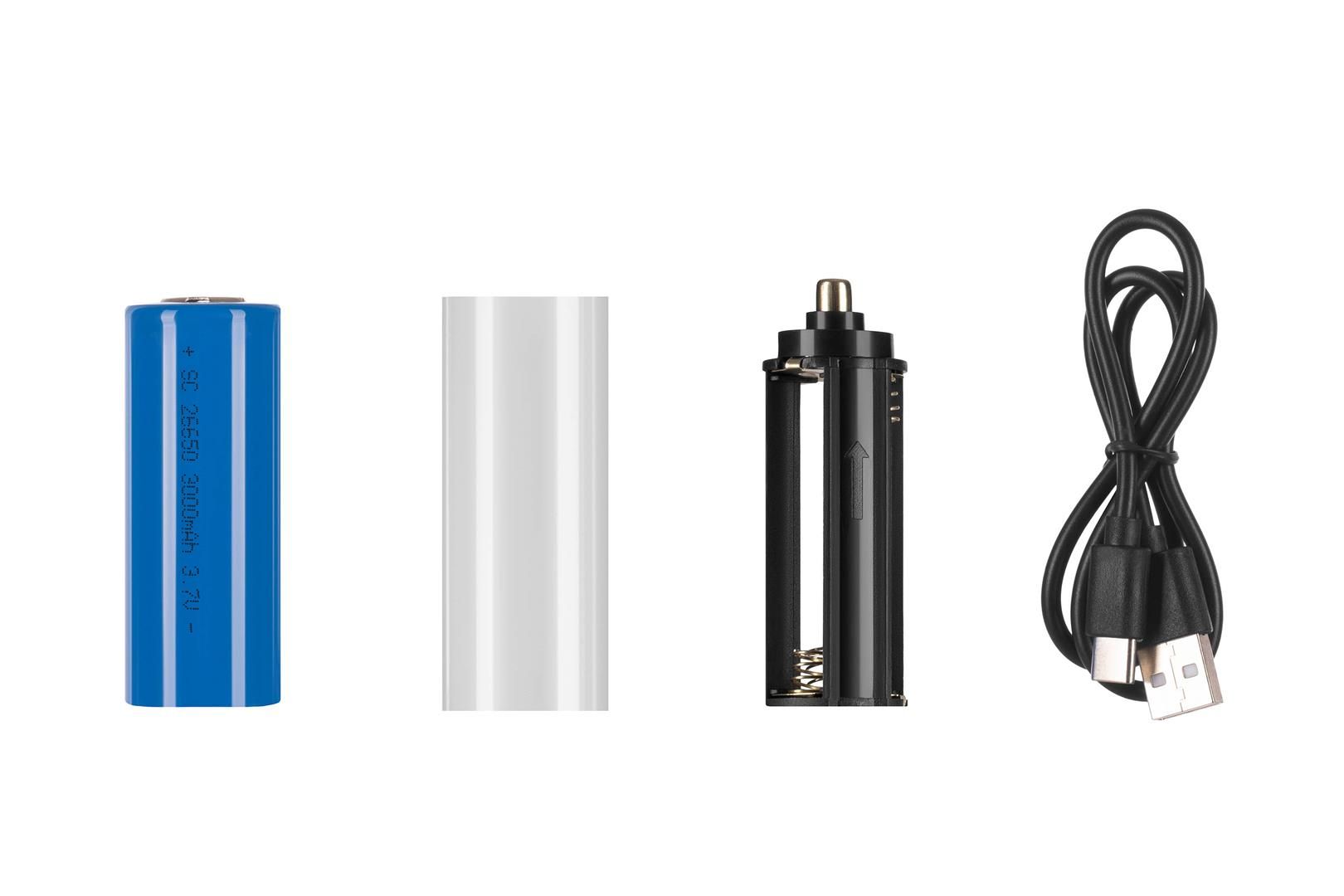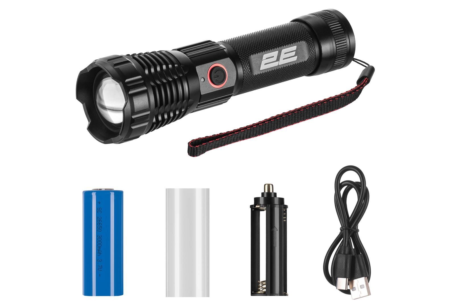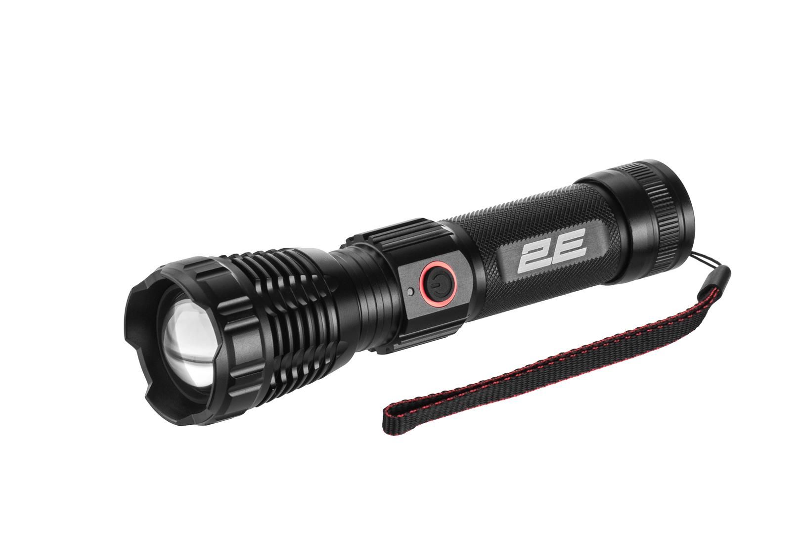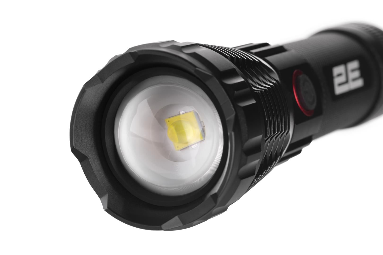 Ручний ліхтар 2E-FLYB2630 оснащений якісним світлодіодом XHP70 зі світловим потоком 2000 люмен та потужністю 10 Вт. Дальність світла становить 200 м. Корпус виготовлений із алюмінієвого сплаву, клас захисту IP68, є індикатор рівня заряду акумулятора.