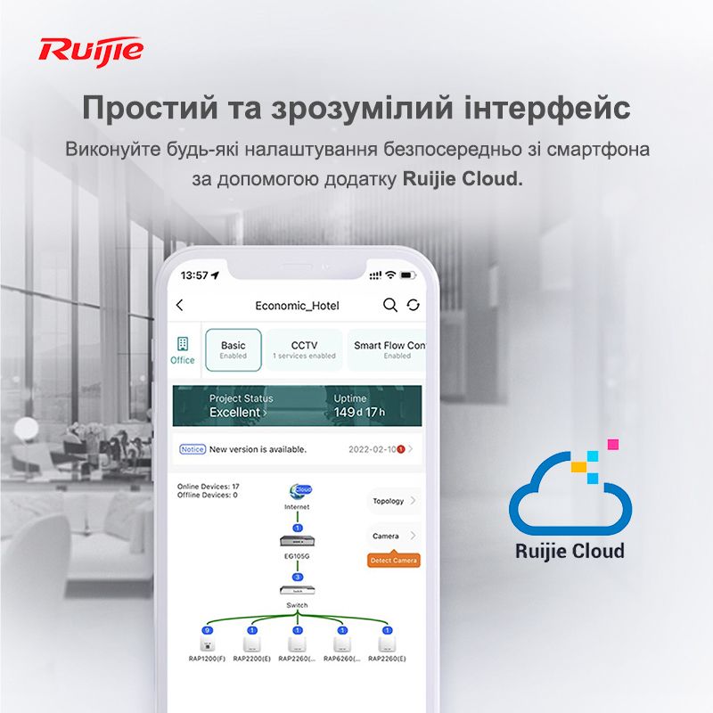 Інтелектуальний 5-портовий маршрутизатор, Зручне налаштування через веб-Ruijie Cloud, або мобільний додаток;