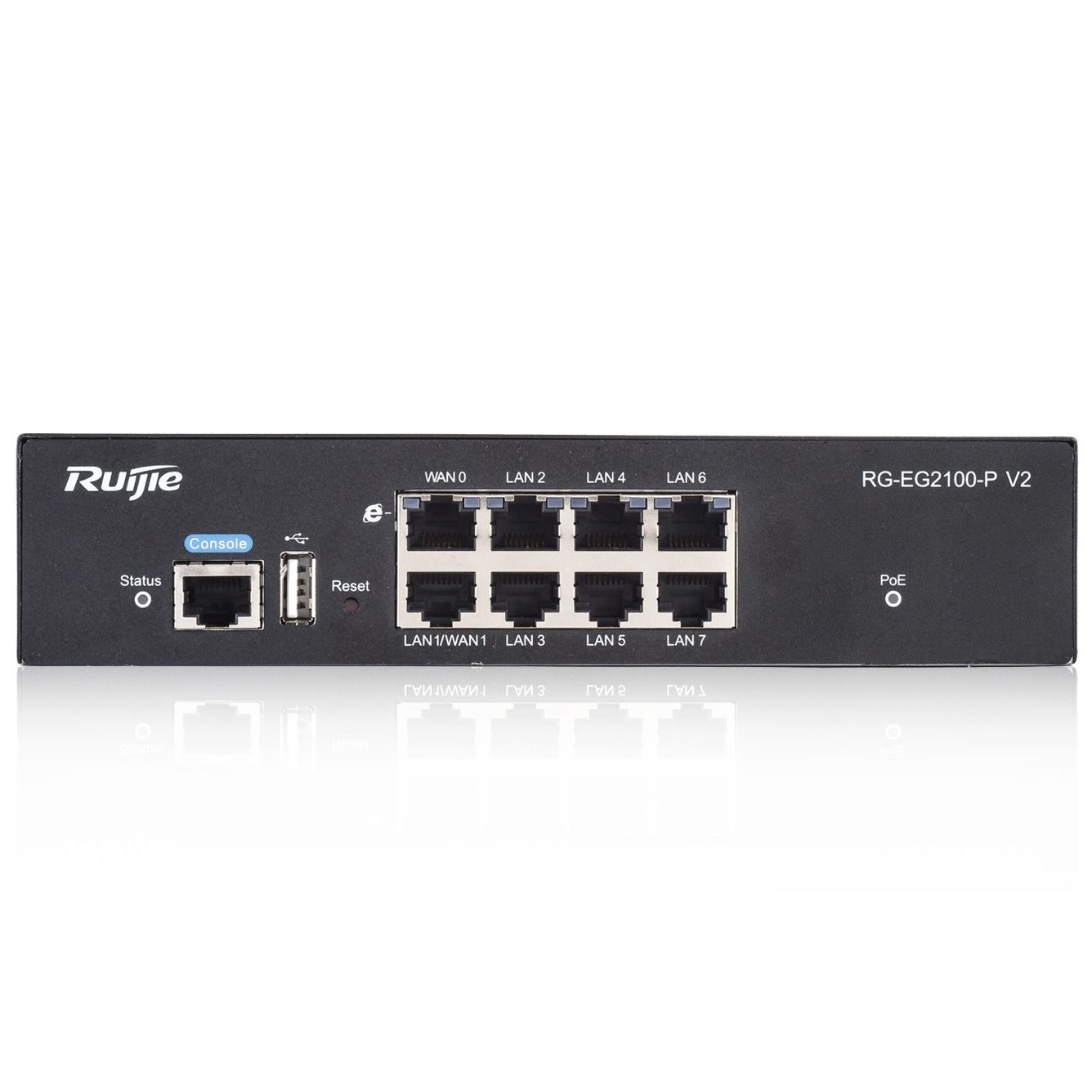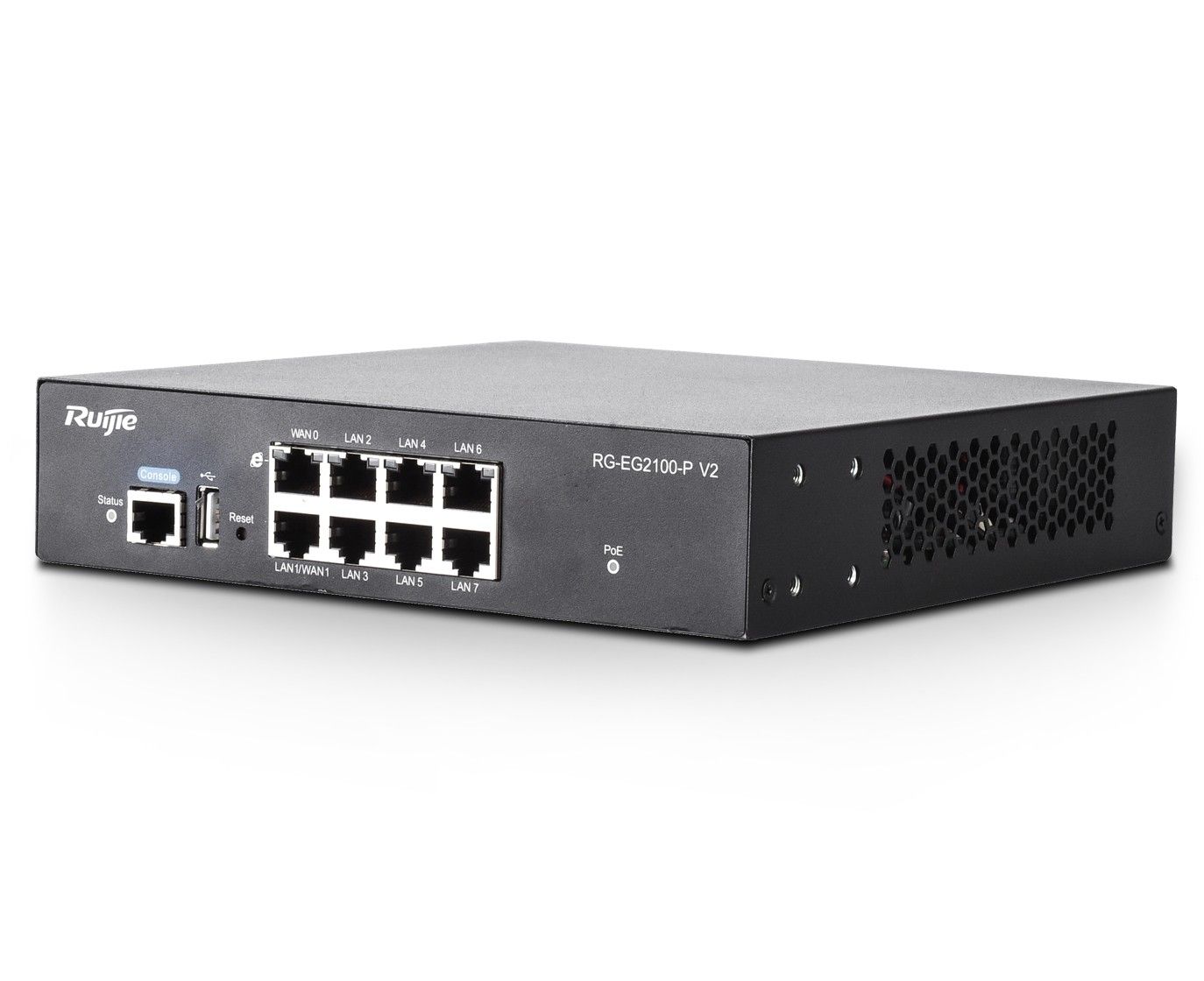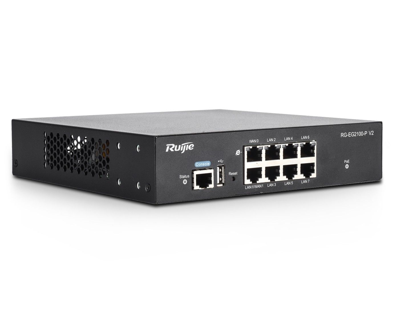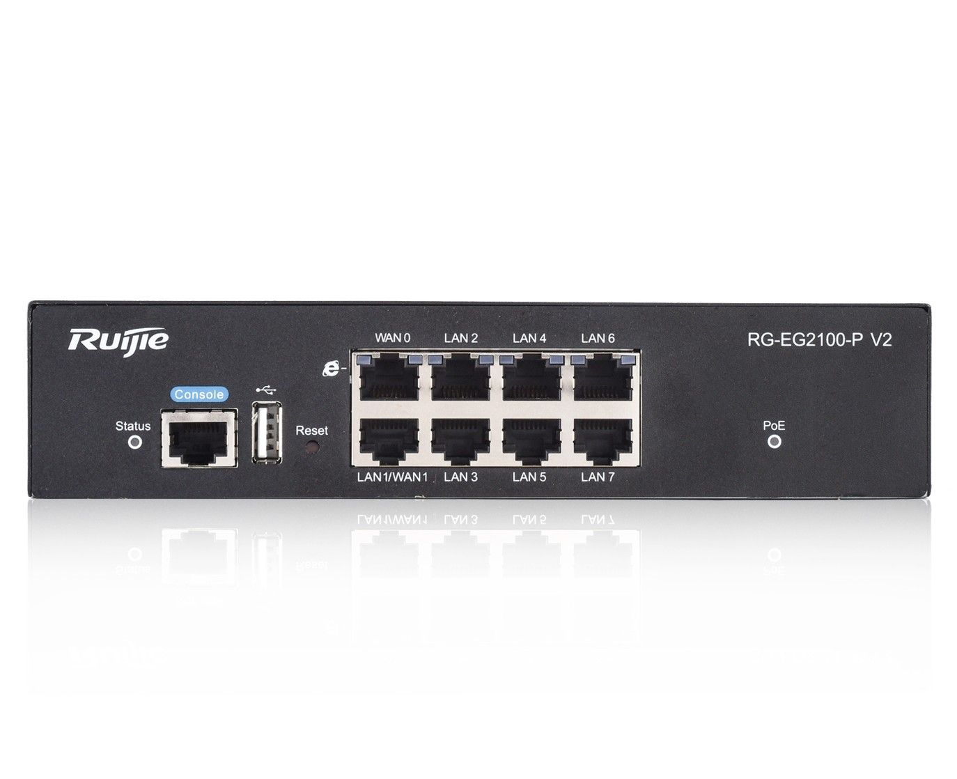 Пристрої EG можуть використовуватися як інтернет-шлюзи в готелях, торгових центрах, університетах, лікарнях, корпоративних мережах та забезпечувати якісну роботу та управління точками доступу, IP-камерами тощо. Технічні характеристики RG-EG2100-P V2 – маршрутизатор Smart Access «все-в-одному» з 8 портами 1000BASE-T, з яких 7 підтримують живлення PoE/PoE+.