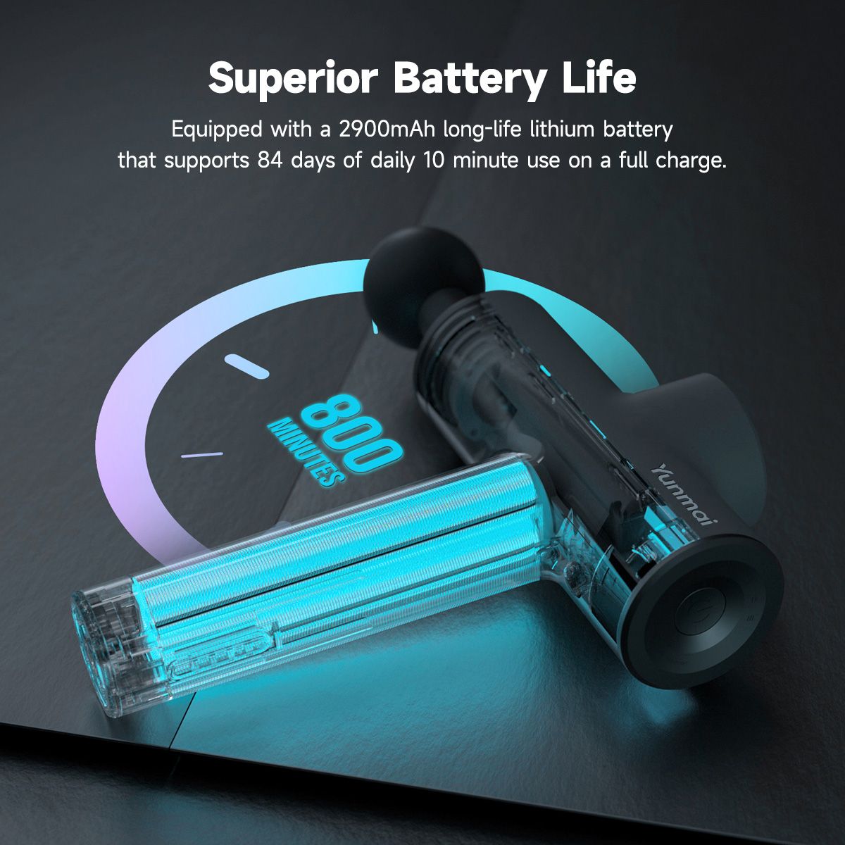 YUNMAI оснащений надтихим безщітковим двигуном, забезпечує максимальну силу тиску 16 кг та забезпечує масаж м’язової тканини на глибині 10 мм та максимальної швидкості 3200 об/хв, ефективно знімає втому та біль у м’язах, забезпечує ефективне розслаблення та швидше відновлення.