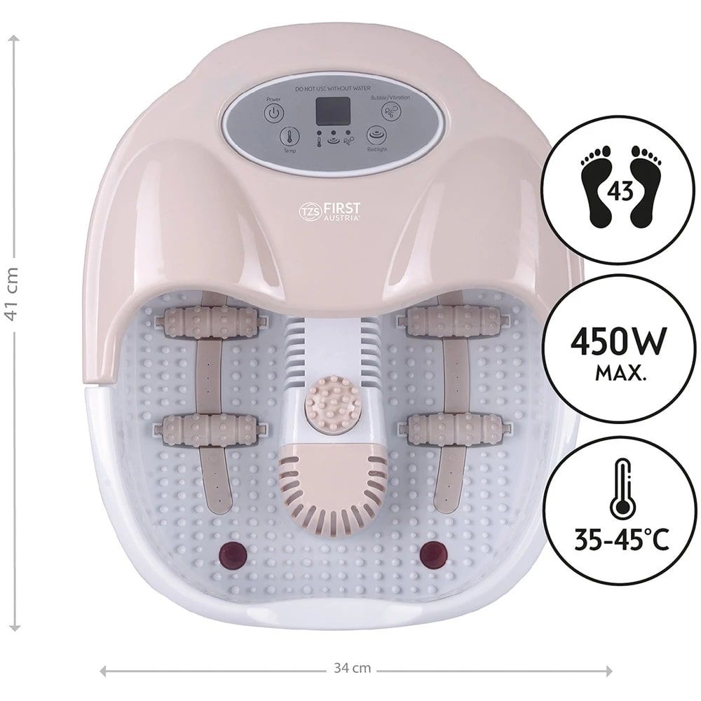 Масажна ванночка First FA-8115-3 — невигадливе, але від цього не менш геніальне рішення для втомлених стоп. Особливо цей пристрій актуальний для тих, хто багато часу проводить на ногах або займається спортом професійно. Прилад "вміє" робити вібраційний і повітряно-бульбашковий масаж. Для цього в його конструкції є 6 роликів. Додавши в ємність воду з оліями або солями, які вам найбільше подобаються, активуйте функцію підтримки температури води рідини. Півгодини блаженства вам забезпечені! За бажання можна задіяти опцію інфрачервоного нагріву. Світлодіодний дисплей допоможе вибрати потрібні опції для масажу.