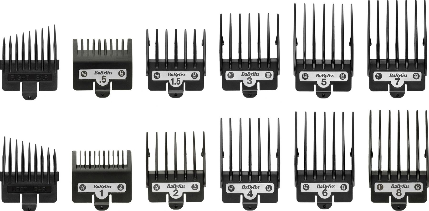 У комплекті – 10 насадок-гребінців для регулювання від 0,5 до 8 (0,8 мм – 25 мм).