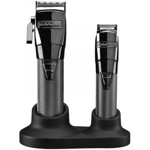 BaByliss PRO FX8705E GunSteel FX Grooming Set - новинка 2019 року - професійний набір для стрижки волосся, який складається з потужної продуктивної машинки для стрижки та ультра-точного триммера в ексклюзивному кольорі GunSteel. Мотори обох інструментів розроблені спільно з інженерами італійської Ferrari, втілюючи найвищі технічні характеристики в парі з ультра-гострими ножовими блоками з японської сталі.