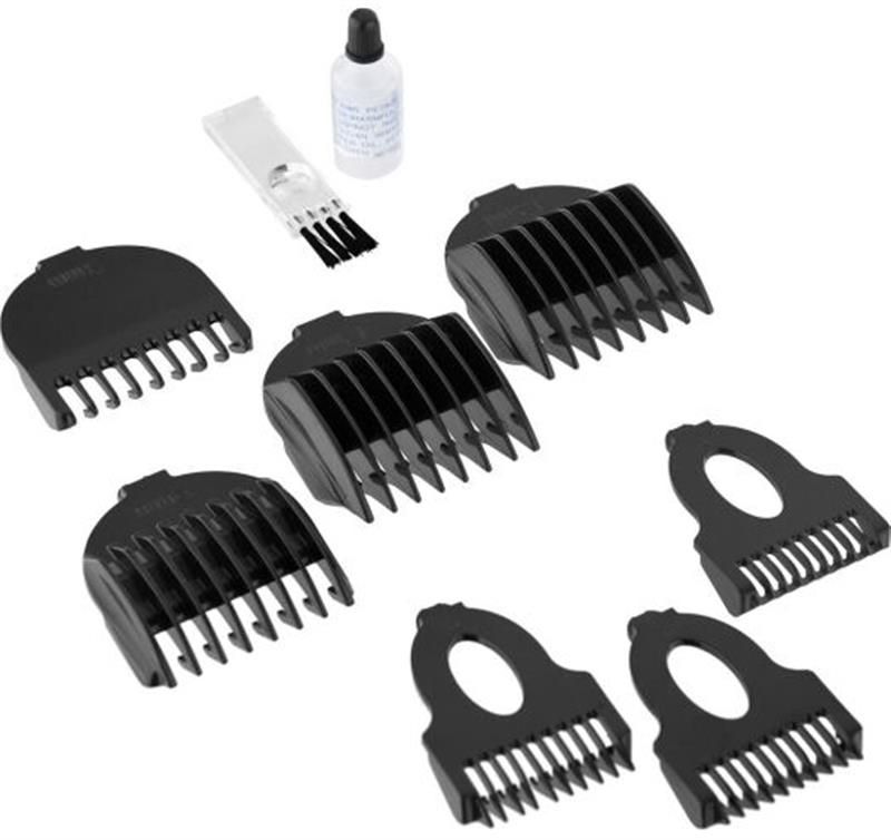 Перед вами техніка, орієнтована на широке розмаїття операцій, які виконуються за допомогою 4 насадок з фіксованою довжиною зрізу волосини і 3 насадок, пристосованих для головки Т-образної будови.