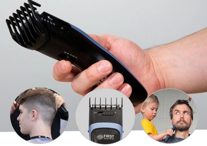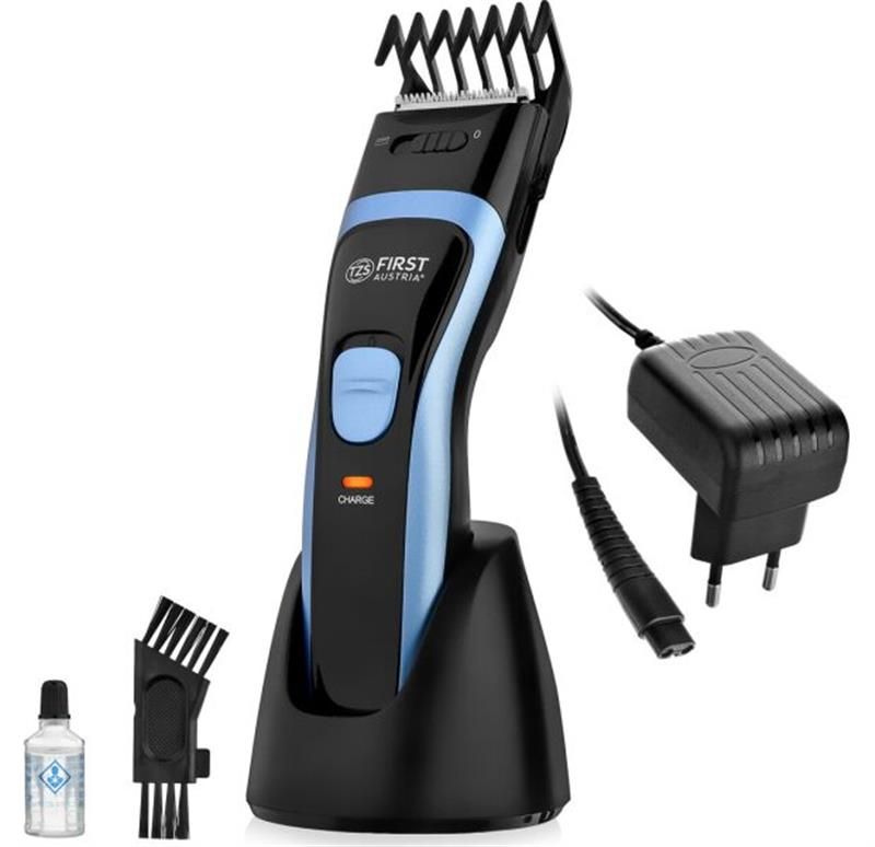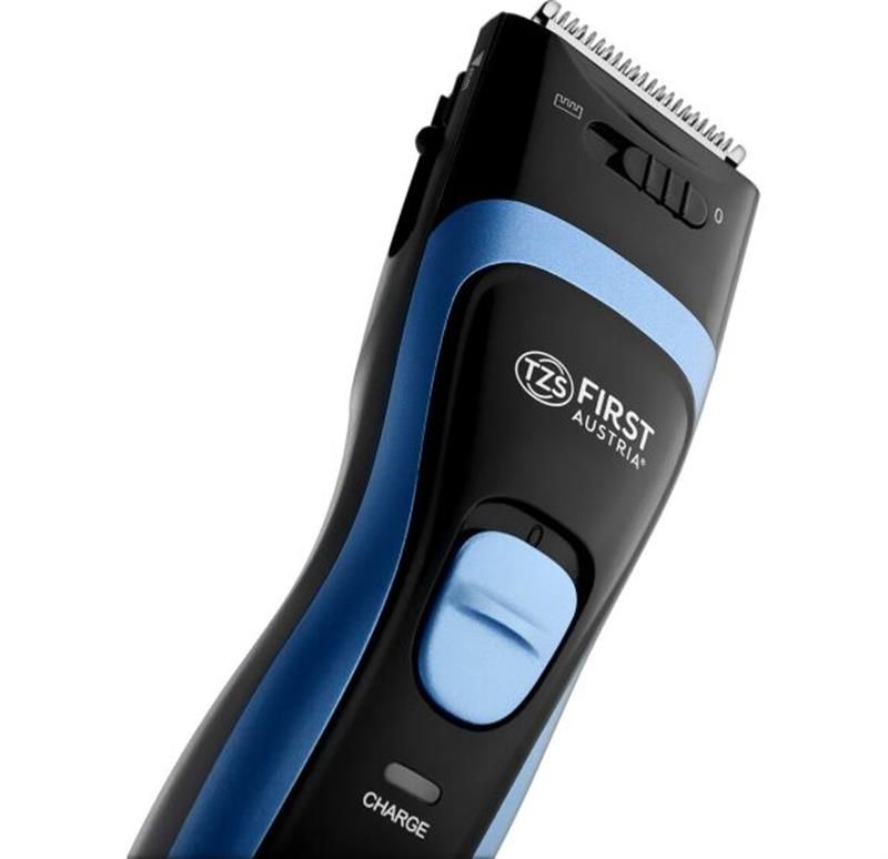 Машинка для стрижки First FA-5676-5 представлена ??в форматі довгастого витягнутого корпусу, який комфортно лягає в долоню, має стильний зовнішній вигляд в чорному кольорі з синіми акцентами, оснащений зручними елементами роботи та управління. Ви зможете з зручністю маніпулювати пристроєм, адже воно працює без кабелю.