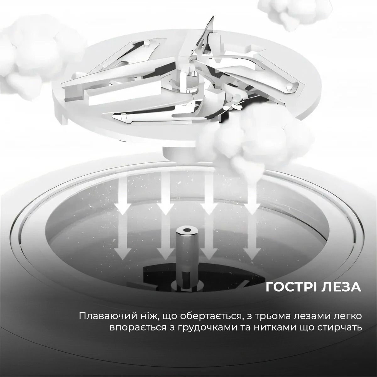Усередині тримера Deerma Lint Remover прихований досить потужний моторчик, що приводить у рух гострий ніж із трьома лопатями-лезами, які і зрізають катишки з поверхні тканини. Швидкість їх обертання досягає 7000 оборотів за хвилину, що дозволяє приладу з легкістю видаляти все зайве, залишаючи по собі лише гладку та рівну поверхню.