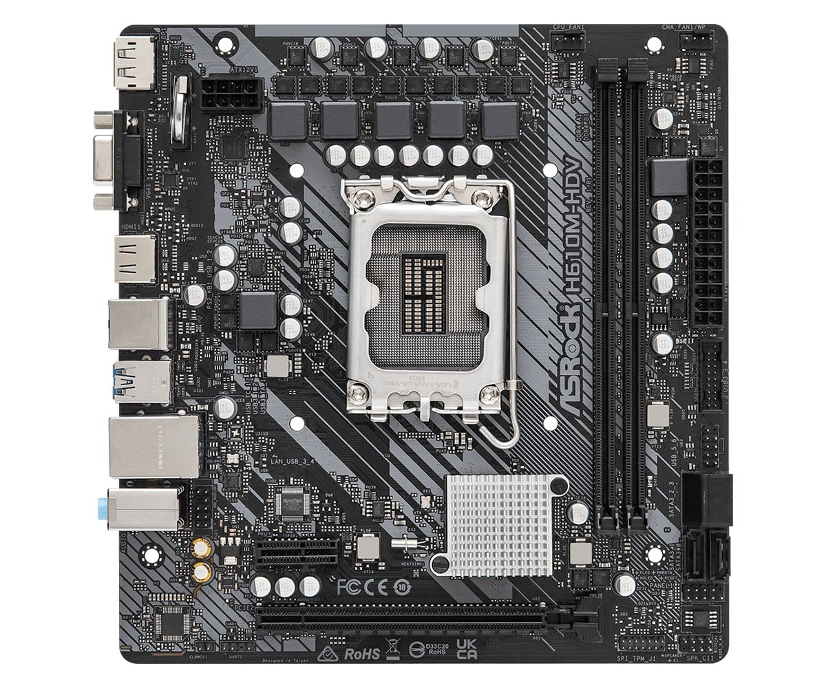Материнська плата ASRock H610M-HDV форм-фактора mATX підтримує процесори Intel із роз’ємом s1700 і оперативну пам’ять DDR4 у кількості до двох модулів. Вона оснащена виходами D-Sub, DisplayPort та HDMI!