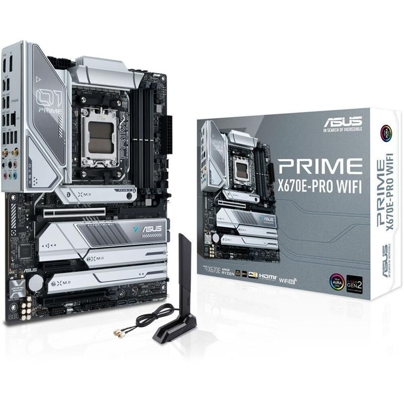 Серія материнських плат ASUS Prime розроблена для розкриття максимальних можливостей новітніх процесорів AMD Ryzen 7000. Модель PRIME X670E-PRO WIFI поєднує в собі потужну систему живлення, ефективне охолодження та інтелектуальні функції налаштування параметрів за допомогою інтуїтивного програмного забезпечення й ексклюзивних функцій BIOS. ASUS PRIME X670E-PRO WIFI пропонує всі свої переваги у стильному футуристичному виконанні: табличка та кришка чіпсета сріблястого кольору виглядають як деталі космічного корабля.