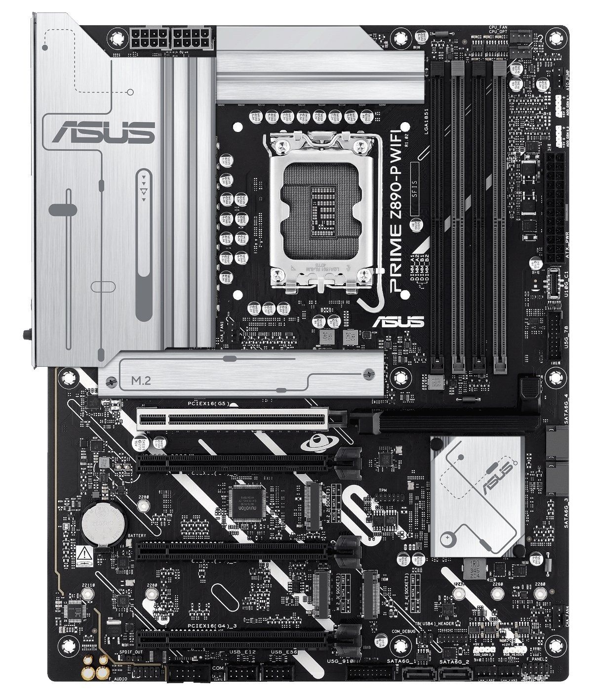 Чотири слоти M.2 (до 128 Гбіт/с). PRIME Z890-P WIFI пропонує загалом чотири слоти M.2, включно з одним, що підтримує швидкість передавання даних до 128 Гбіт/с через PCIe 5.0, і три, що підтримують 64 Гбіт/с через PCIe 4.0. Це дає змогу прискорити завантаження і завантаження застосунків із дисків з ОС або застосунками
