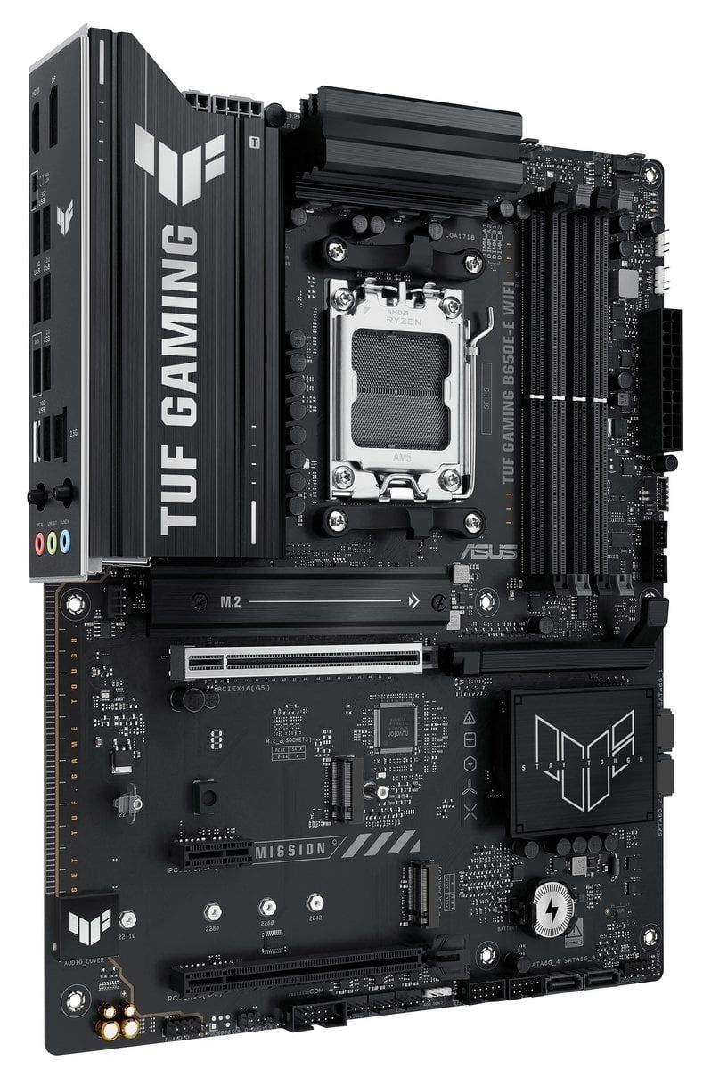ASUS TUF GAMING B650E-E WIFI – це всі основні елементи найновішого сокету AM5 для настільних процесорів AMD Ryzen, які поєднуються з ігровими можливостями та перевіреною часом надійністю. Ця материнська плата, оснащена компонентами військового класу, модернізованим рішенням харчування та комплексною системою охолодження, перевершує всі очікування, забезпечуючи надійну та стабільну продуктивність для марафонських ігор. Материнські плати TUF GAMING також проходять суворі випробування на витривалість, щоб гарантувати, що вони зможуть впоратися з умовами, в яких можуть вийти з ладу інші. З естетичної точки зору, у цій моделі використані суворі чорні кольори та геометричні елементи дизайну, що відображають надійність та стабільність, які визначають серію TUF GAMING. Ця платформа забезпечує потужність та можливості підключення, які потрібні передовим додаткам для ПК зі штучним інтелектом.