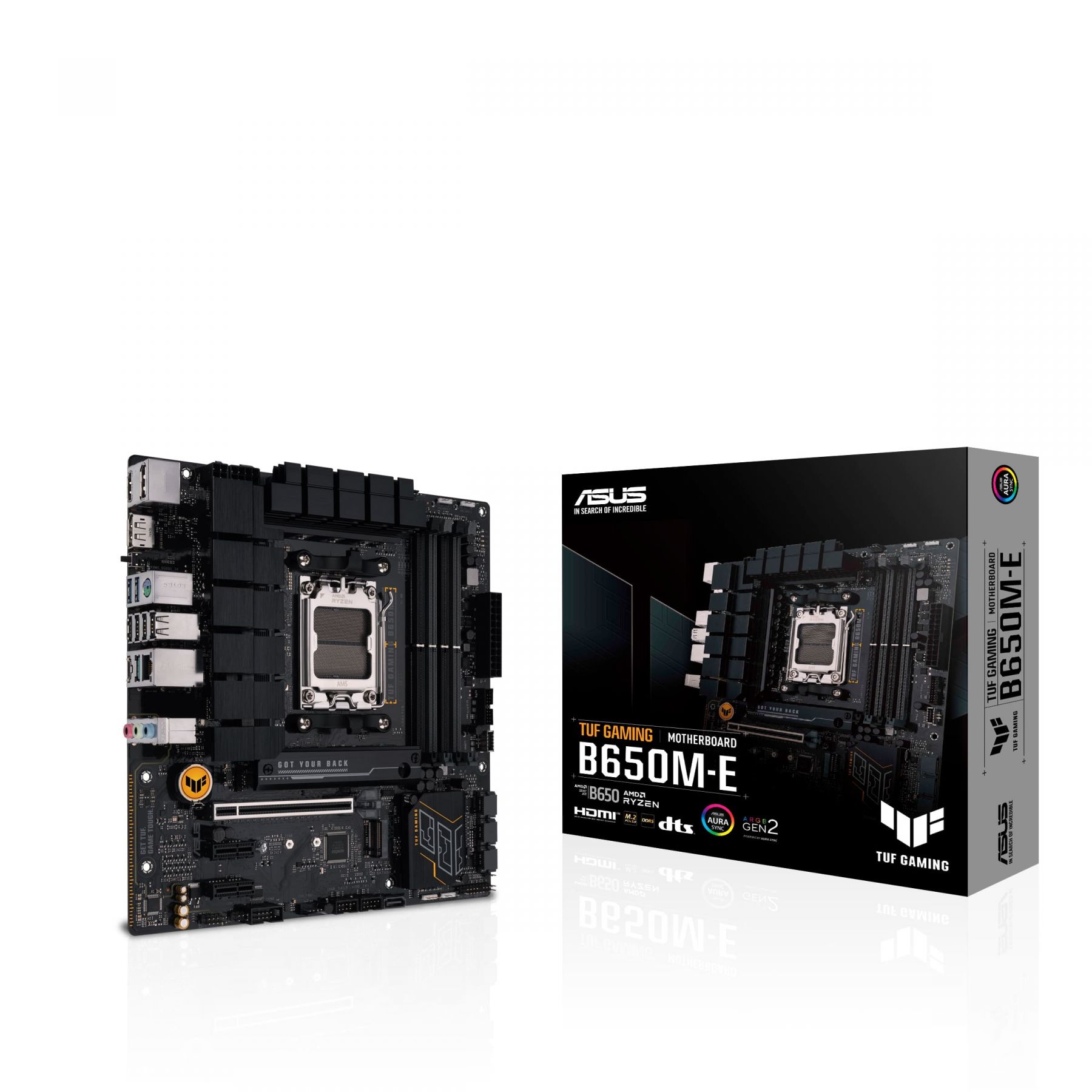 У материнській платі ASUS TUF GAMING B650M-E зібрані всі основні елементи новітніх процесорів AMD Ryzen 7000-ї серії, які поєднуються з ігровими можливостями та перевіреною часом надійністю. Завдяки використанню компонентів військового класу, модернізованої системи живлення та комплексної системи охолодження ця материнська плата перевершує всі очікування, забезпечуючи стабільну та надійну роботу в марафонських іграх. Крім того, материнські плати TUF GAMING проходять жорсткі випробування на витривалість, що гарантує, що вони впораються з умовами, в яких інші можуть вийти з ладу. З естетичного погляду ця модель виконана в строгих чорних тонах і має геометричні елементи дизайну, що відображають надійність і стабільність, характерні для серії TUF GAMING.