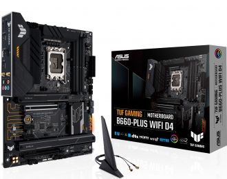 ASUS TUF GAMING B660-PLUS WIFI D4 поєднує всі основні елементи найновіших процесорів Intel з ігровими функціями і перевіреною надійністю. Ця материнська плата, розроблена з використанням компонентів військового класу, модернізованого рішення щодо харчування та комплексної системи охолодження, забезпечує надійну та стабільну продуктивність для марафонських ігор. З естетичного погляду TUF GAMING B660-PLUS WIFI D4 має новий логотип TUF Gaming та прості геометричні елементи дизайну, що відображають надійність та стабільність, характерні для серії TUF Gaming.