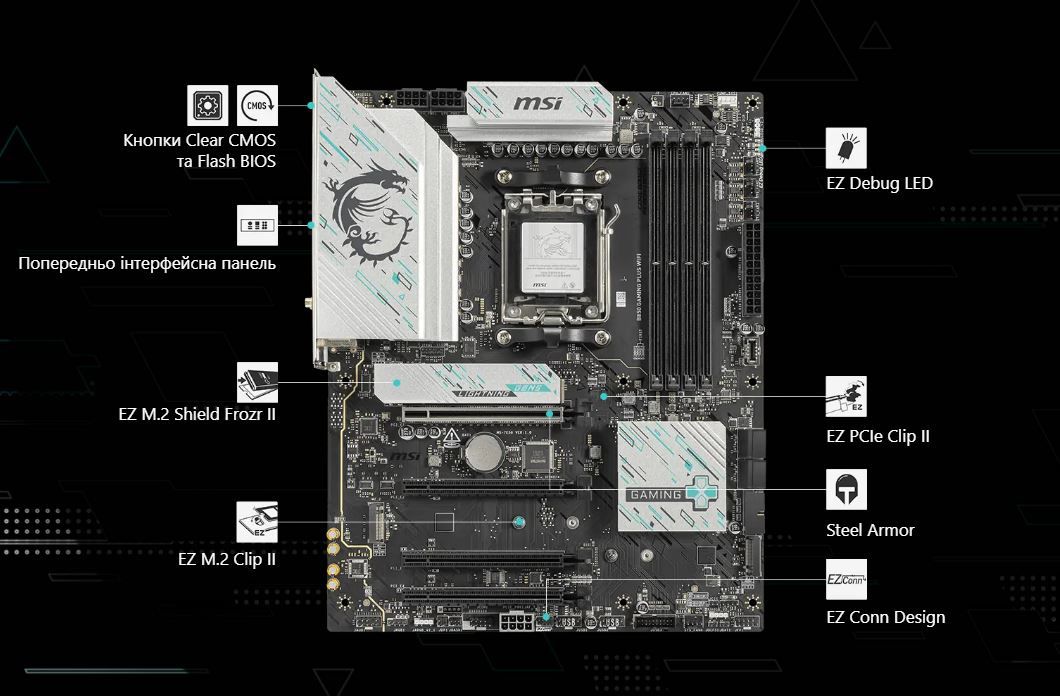 Материнська плата MSI B850 Gaming Plus WiFi Socket AM5