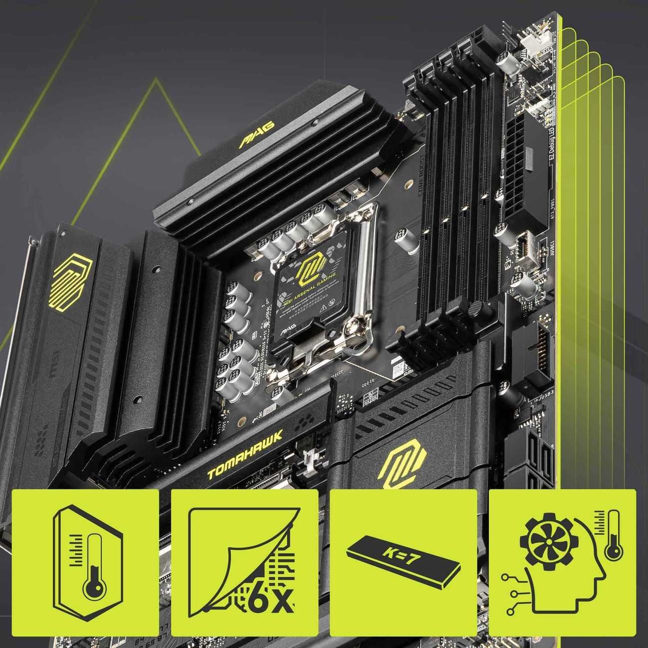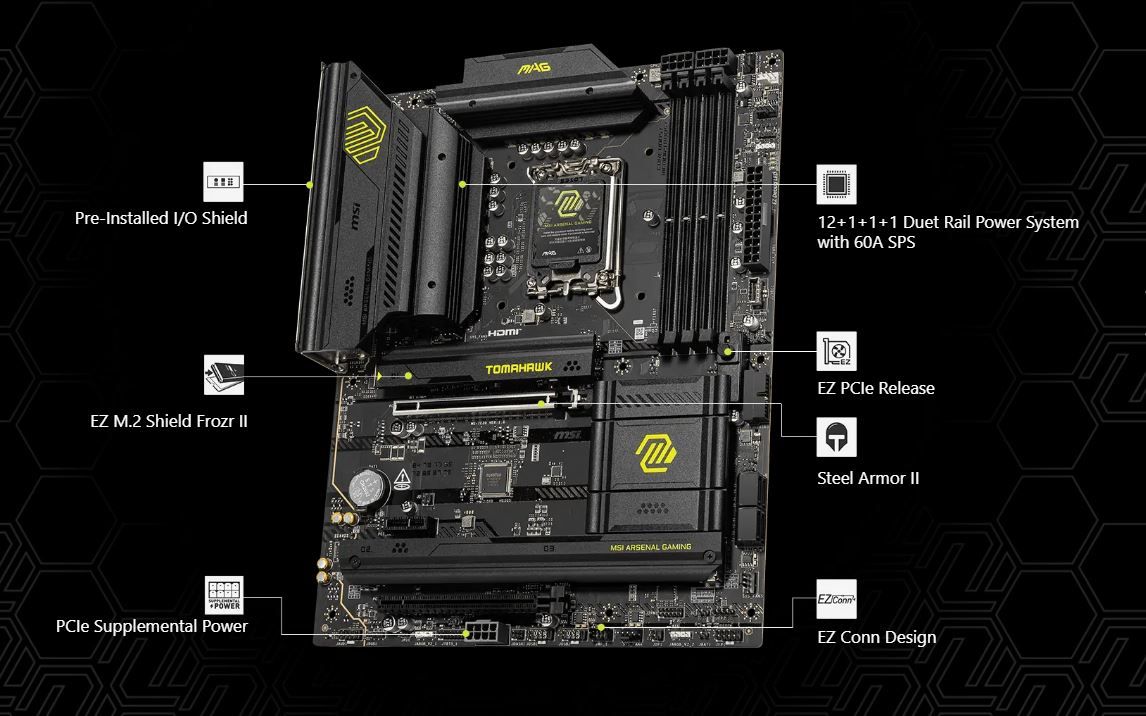 Завдяки ексклюзивній технології Core Boost і двом 8-pin конекторам живлення, MAG B860 TOMAHAWK WIFI здатна витримувати високі навантаження на процесор: