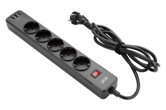 Мережевий фільтр 2E 5хSchuko, 2 м (2E-SP515M2USBBK)