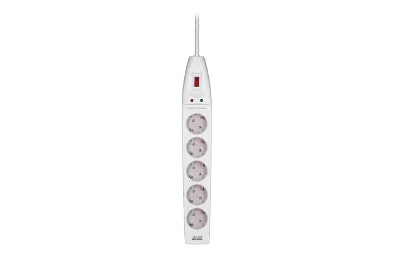 Мережевий фільтр 2E має п’ять розеток, розташованих під кутом 45°, щоби вилки пристроїв не заважали одна одній. Корпус виготовлений з вогнетривкого PC-пластику, що забезпечує високу термостійкість та запобігає виникненню пожежі. У кабелі мережевого фільтра ізольована кожна жила: трижильний H05VV-F із перерізом 1,5 мм. Матеріал провідника – 100 % мідь. Саме ці особливості зумовлюють допустиме максимальне навантаження на пристрій 3 680 Вт.